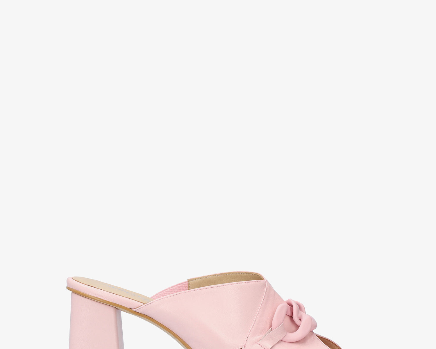 Soft nude mule with a thin block heel
