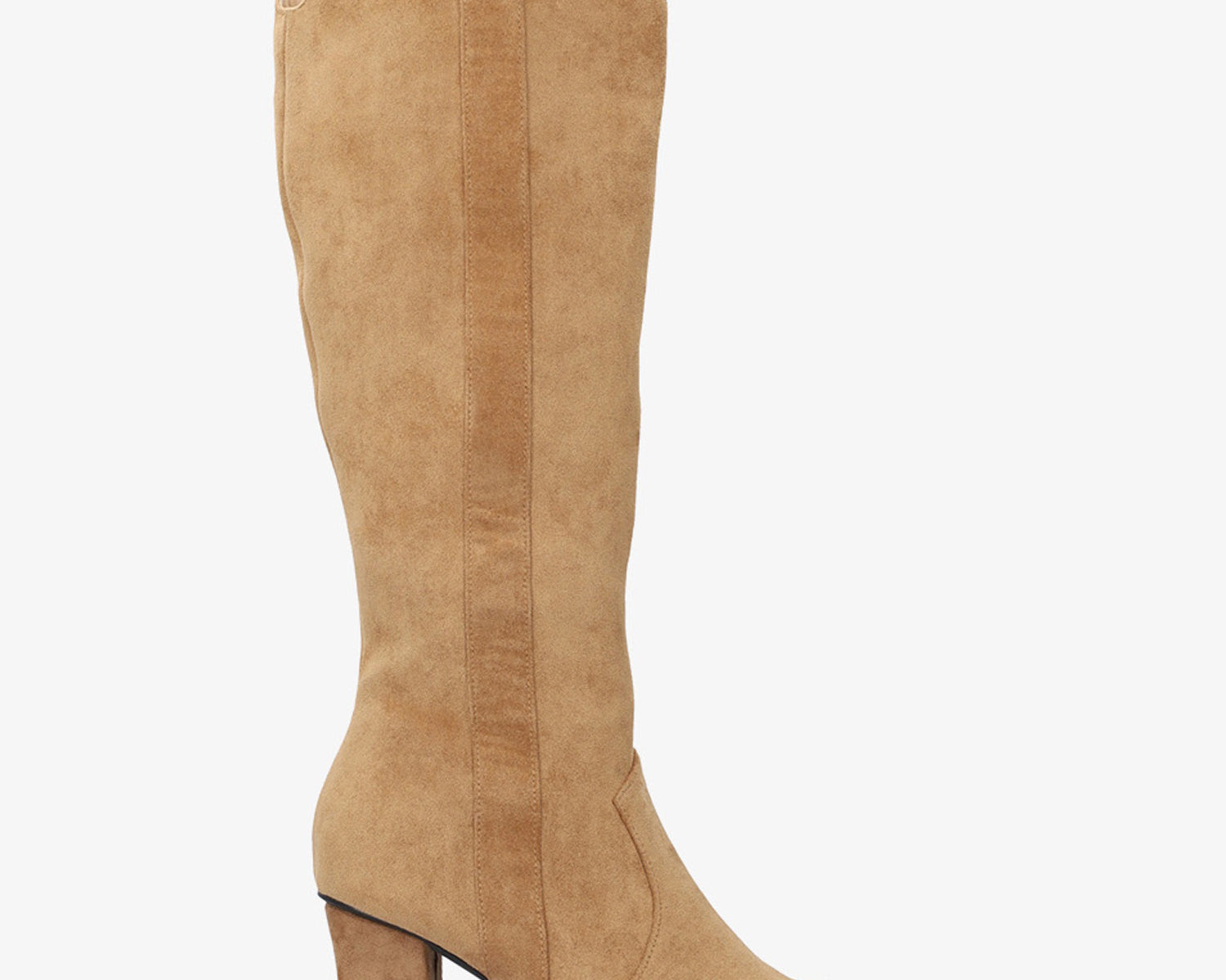 Heeled high boots in brown faux suede.