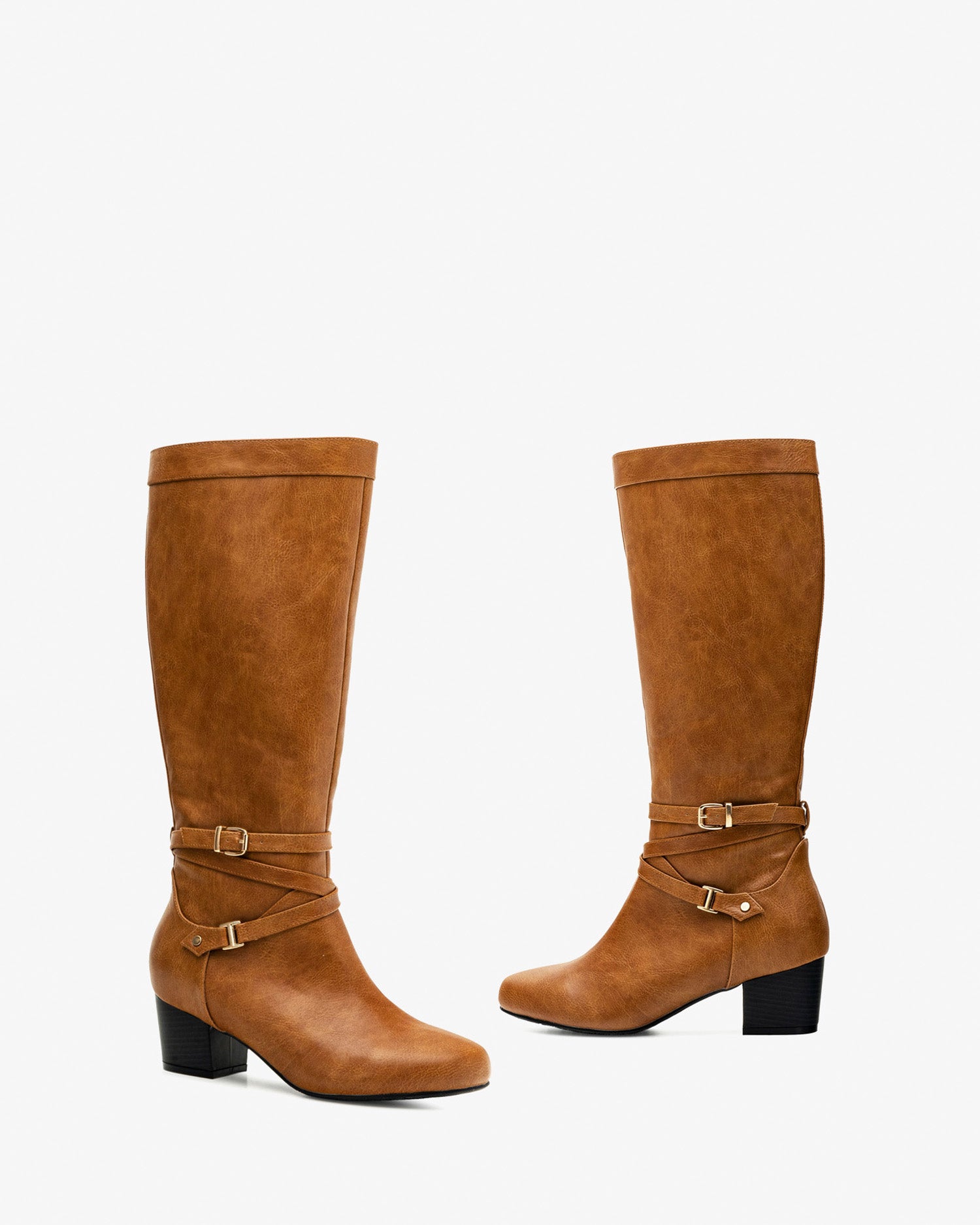 2-buckled boots in camel faux leather