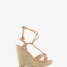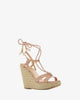 Ankle-tie jute wedges in engraved nude