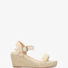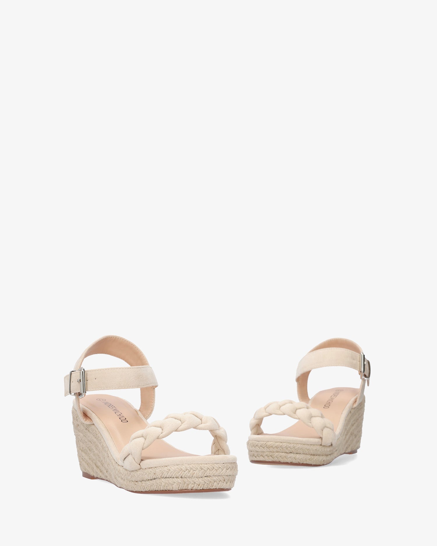 Beige faux suede sandals with a wedge. Backless design with a wide braided strap in the front. Buckle closure with a wide strap around the ankle. Open toe. Jute wedges and front platform. Wedge measures 2,75", and the platform is 0,98" for small sizes from 32 to 35. Wedge measures 3,34", and the platform is 1,18" for large sizes from 42 to 45. This model may vary from the standard, we recommend you check the cms of the insole.