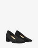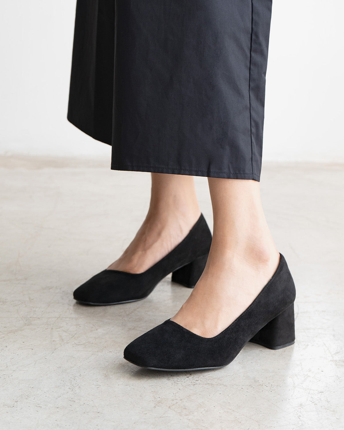 Black faux suede heeled pumps