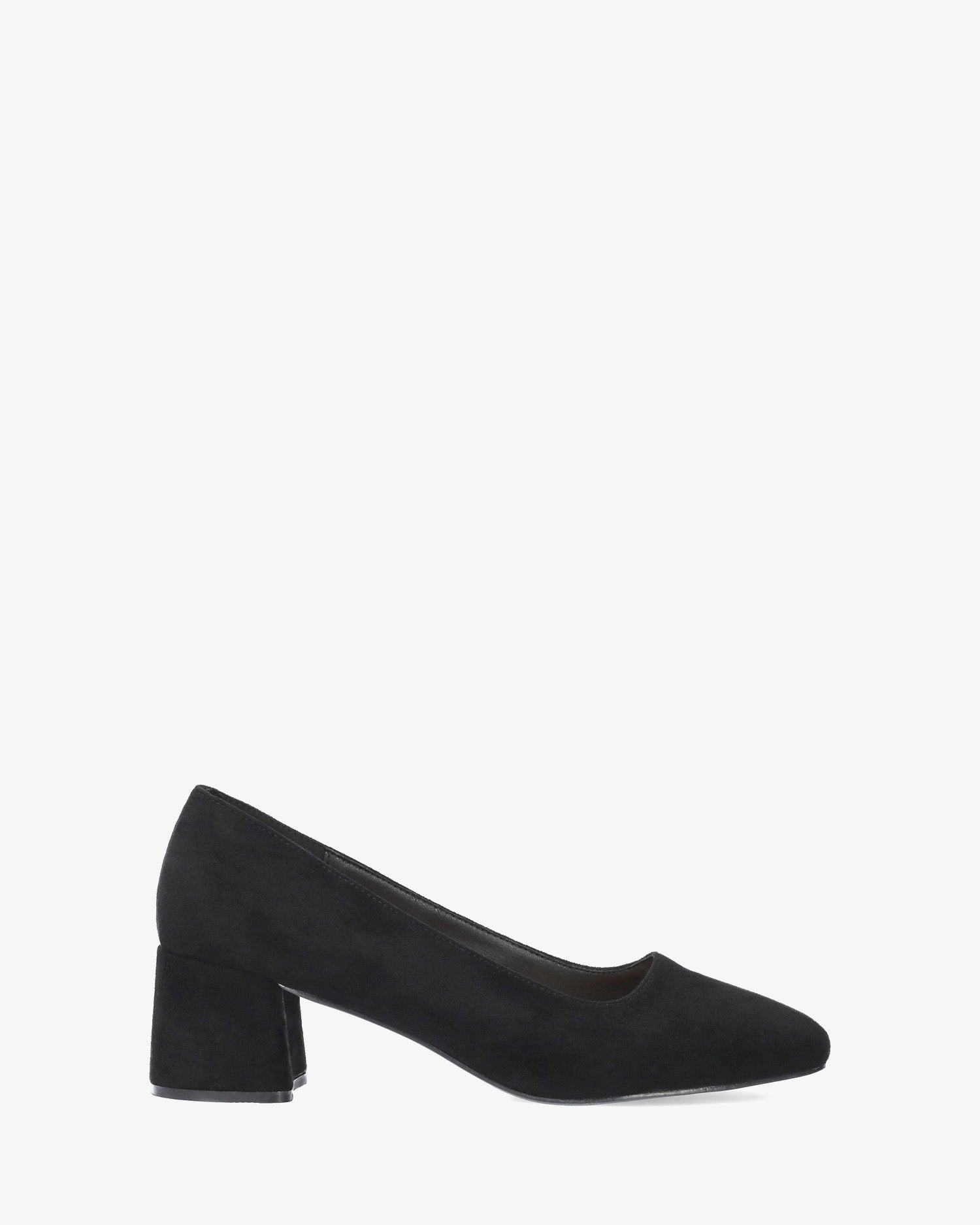 Black faux suede heeled pumps. Finished with a squared toe.The lined block heel measures 6cm / 2,36" for small sizes from 32 to 35 and 6cm / 2,36" for large sizes from 43 to 46.