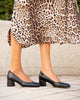 Heeled shoes in Black leather. Lining and insole in Red leather. Matching wide heel of 1.57" / 4 cm for small sizes from EU 32 to 35. Matching wide heel of 1.77" / 4.5 cm for medium sizes from EU 42 to 45. Matching wide heel of 1.96" / 5 cm for large sizes from EU 42 to 45. Made in Spain. This model fits small, we recommend taking one size larger than usual.