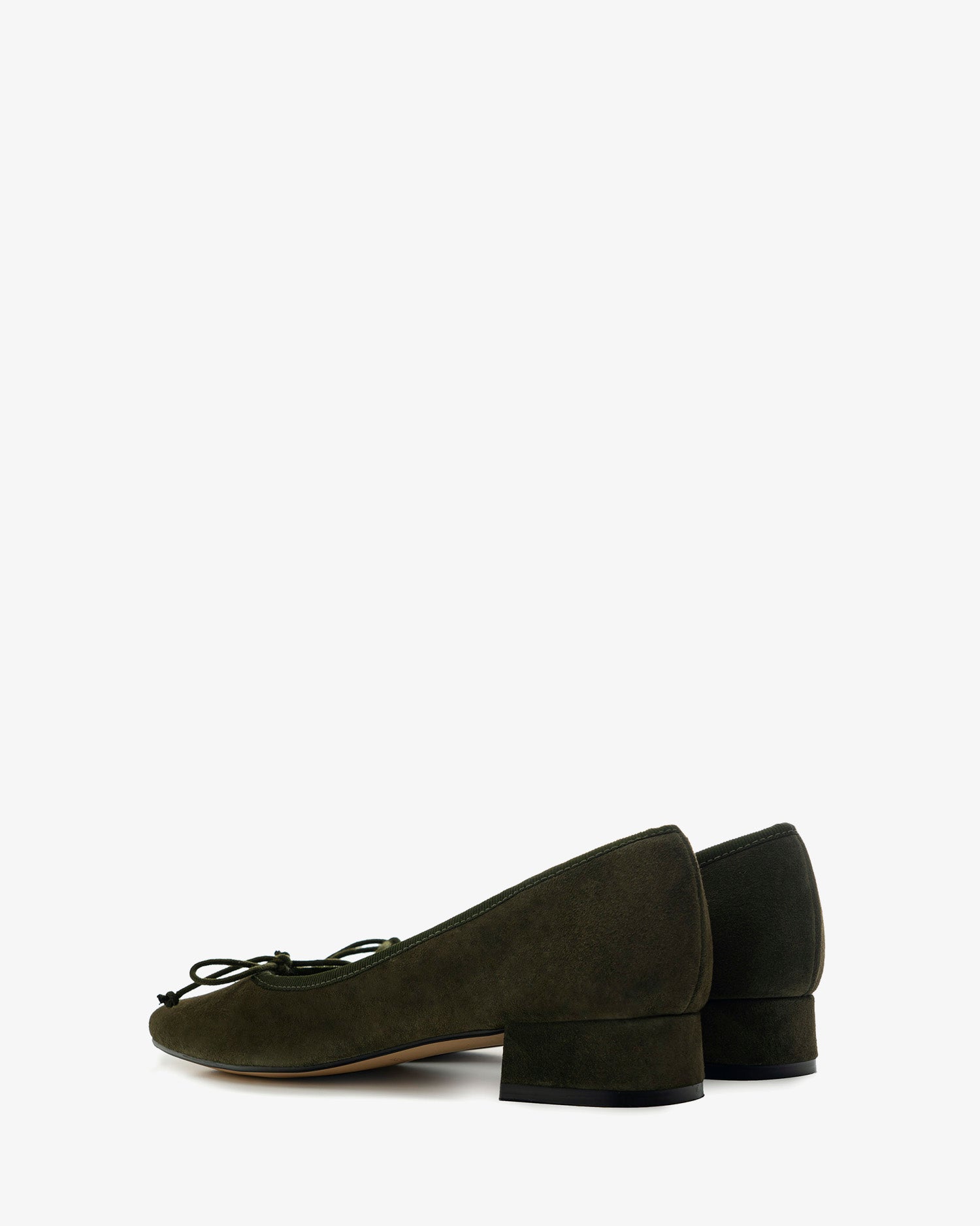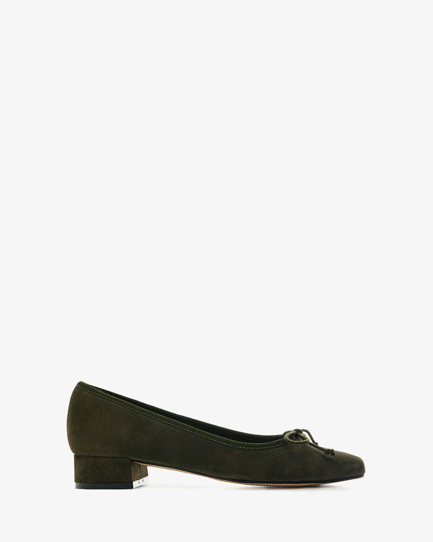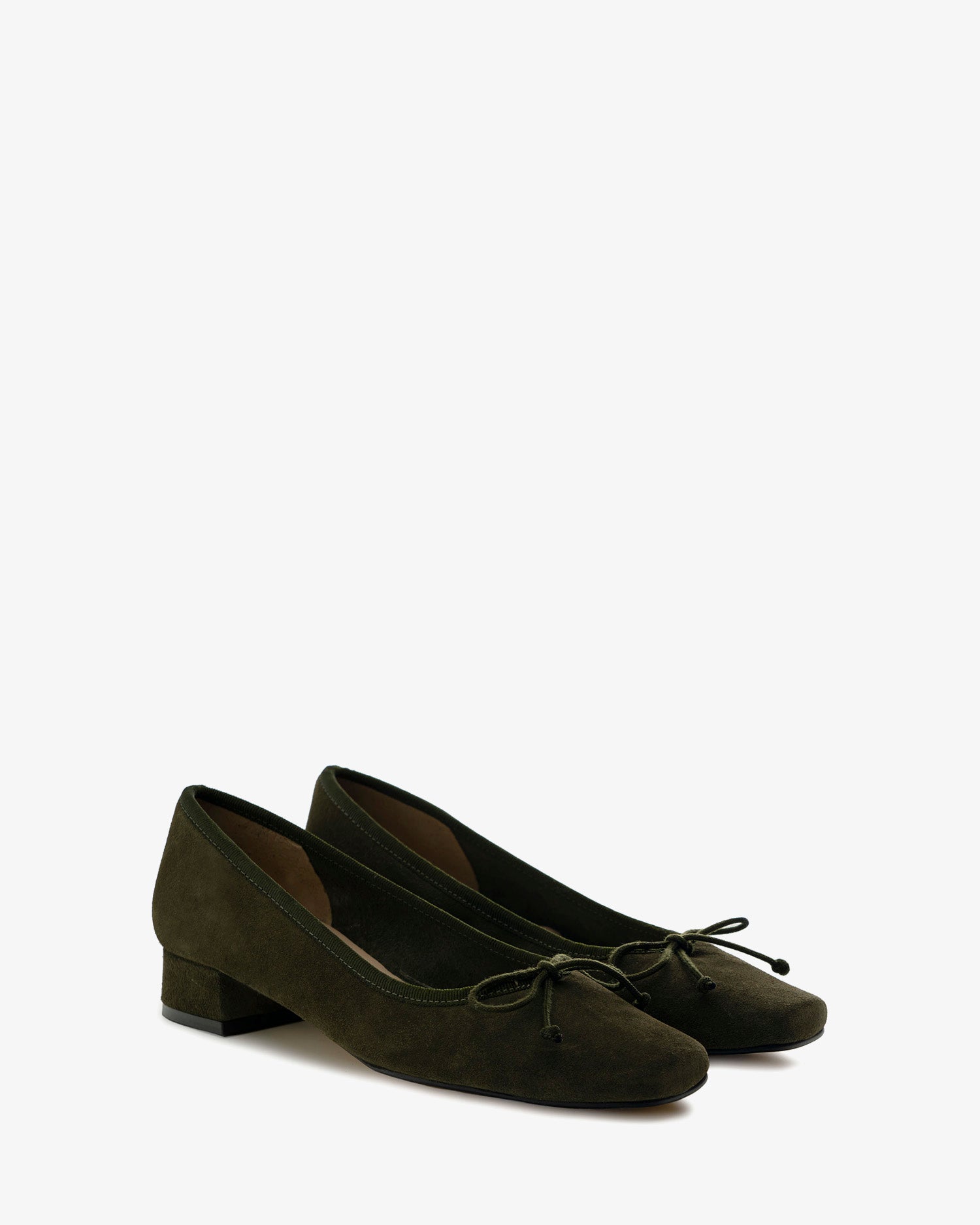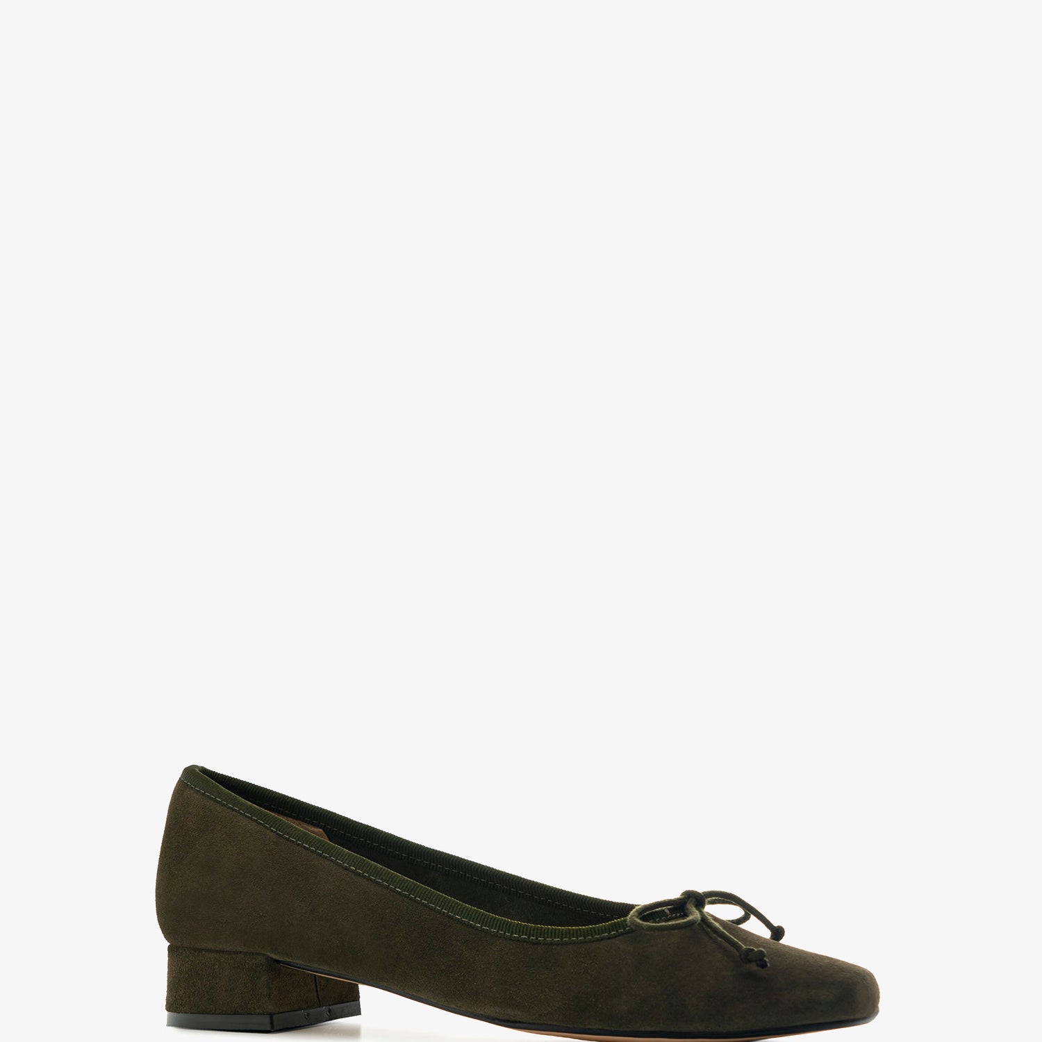 Ballet flats made of Khaki split leather. Piping in toned-coloured nylon and bow tie detail centered on the upper. Interior lining in leather and square toe. Covered to the tone block heel of 0.98" / 2.5 cm of height for small sizes from UK 0.5 to 2.5 / EU 32 to 35. Heel of 1.18" / 3 cm of height for large sizes from UK 8 to 10.5 / EU 42 to 45. Made in Spain.