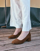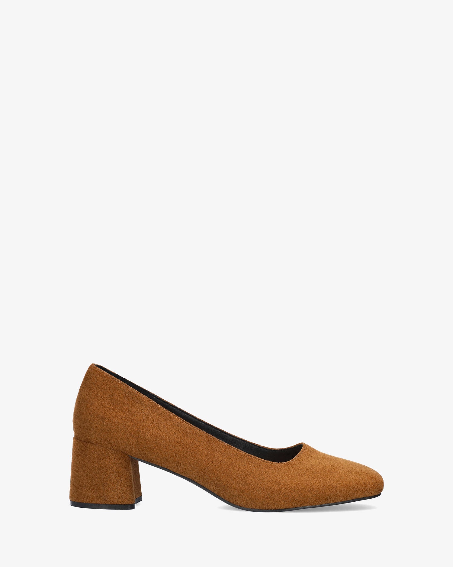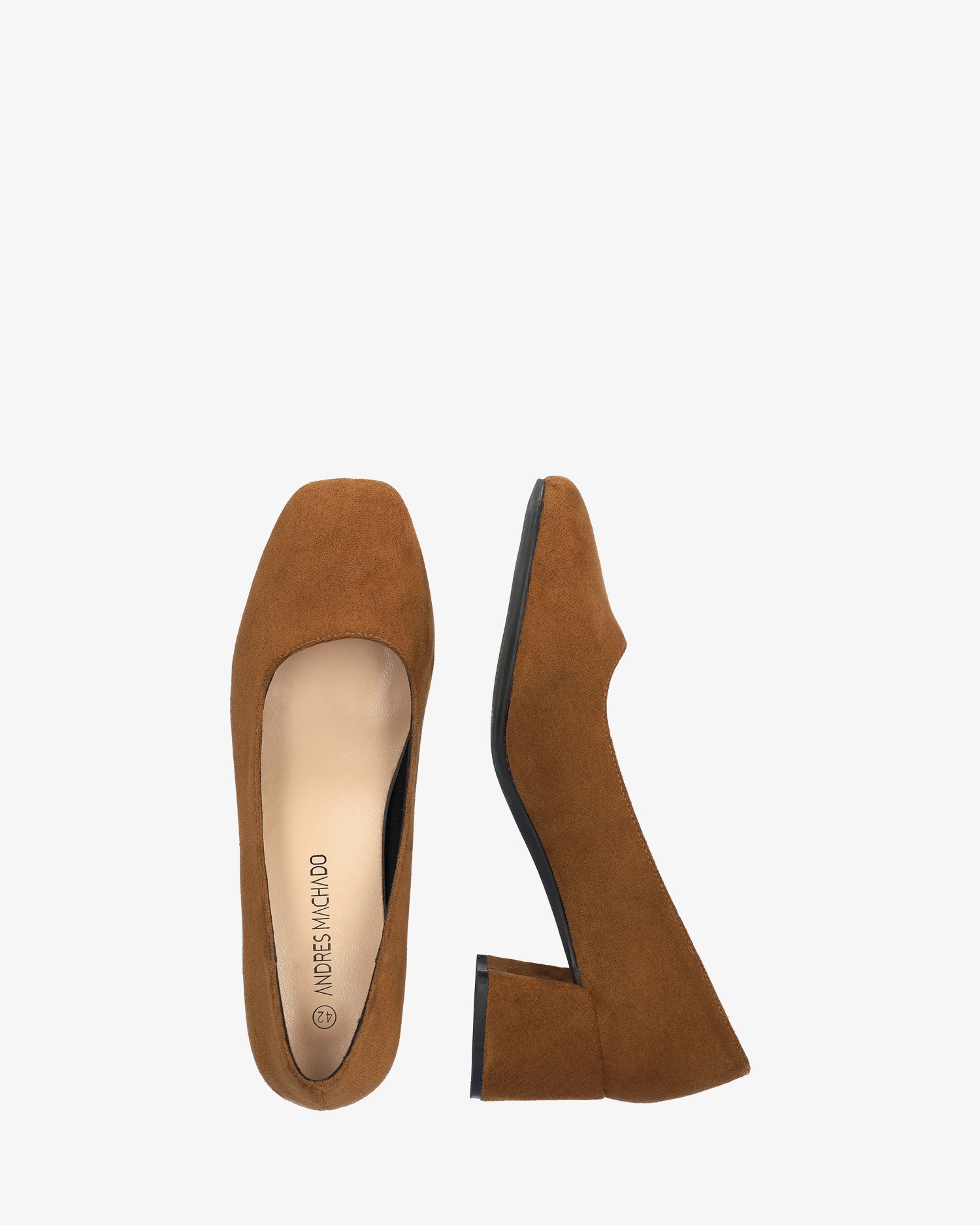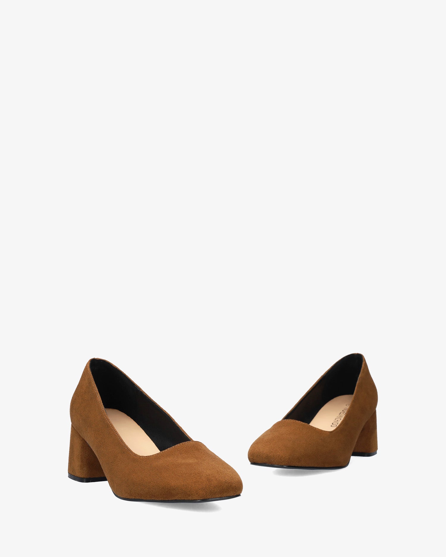 Brown faux suede heeled pumps. Finished with a squared toe. The lined block heel measures 6cm / 2,36" for small sizes from 32 to 35 and 6cm / 2,36" for large sizes from 42 to 46.