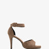 Brown faux suede heeled sandals. Matching, wide strap over the vamp. Buckled strap closure around the ankle. Counter lined in matching brown faux suede leather. The heel is 8 cm / 3.14`` high and the mini platform is 1 cm / 0.39`` high for small sizes from 32 to 35 EU. The heel is 10.5 cm / 4.13`` high and the mini platform is 1 cm / 0.39`` high for large sizes from 42 to 45 EU.