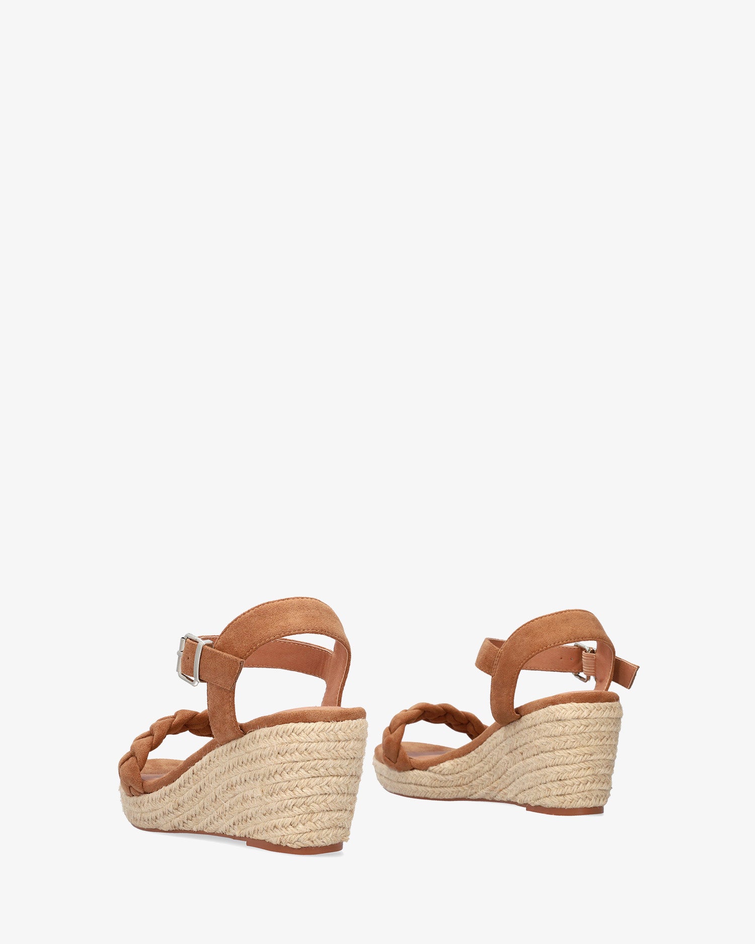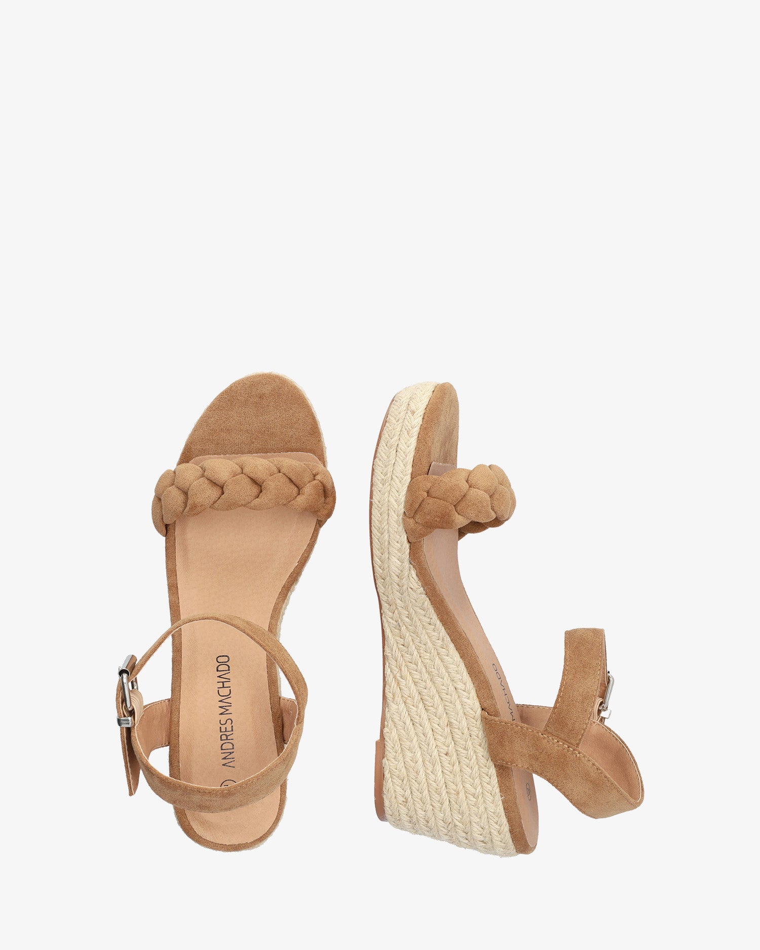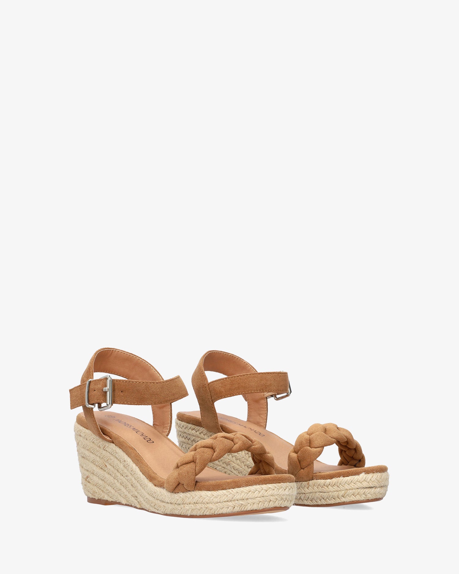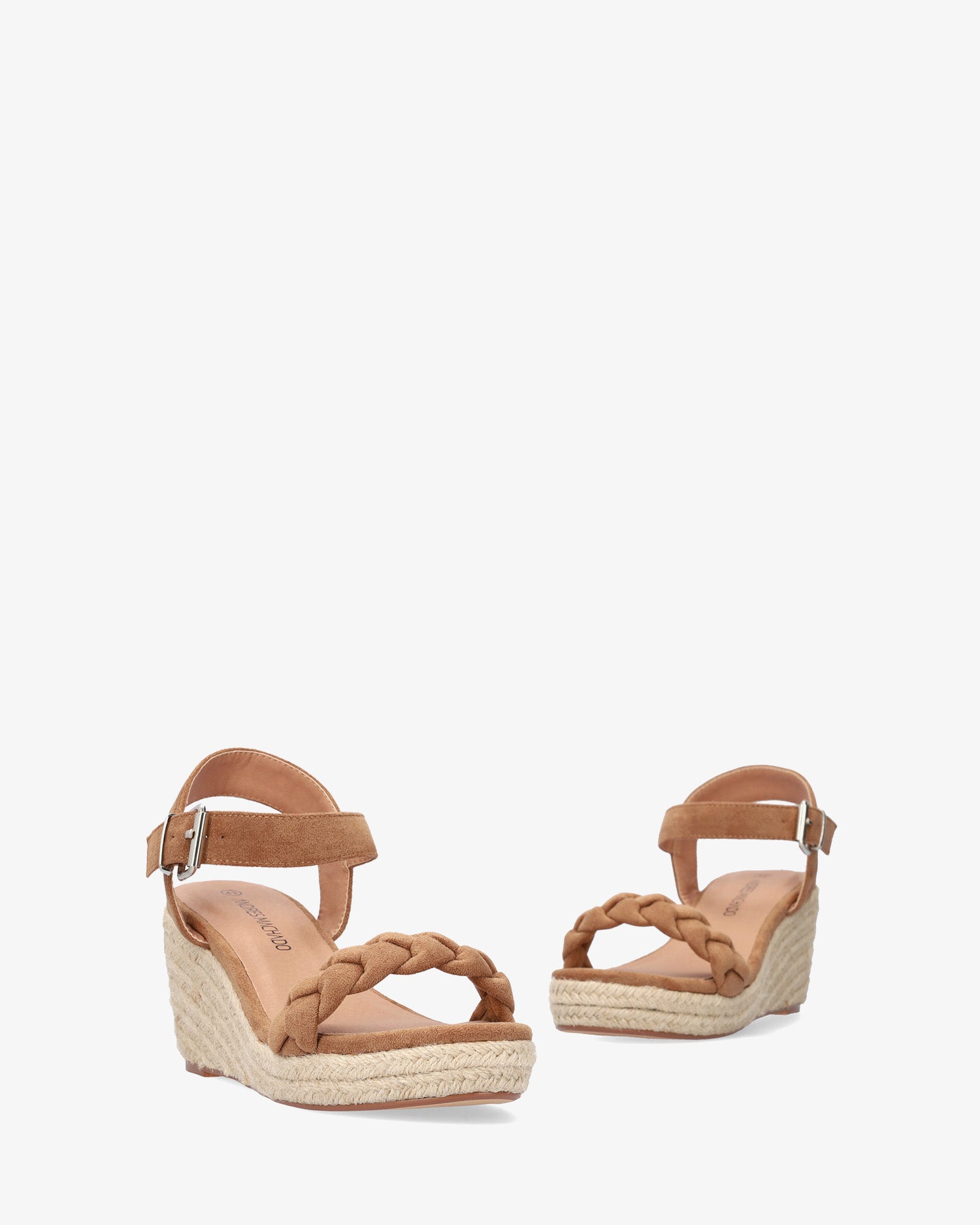 Brown faux suede sandals with a wedge. Open-toe design with a wide braided strap in the front. Buckle closure with a wide strap around the ankle. Open toe. Wedges and front platform in jute. Wedge measures 2,75", and the platform is 0,98" for small sizes from 32 to 35. Wedge measures 3,34", and the platform is 1,18" for large sizes from 42 to 45. This model may vary from the standard, we recommend you check the cms of the insole.
