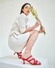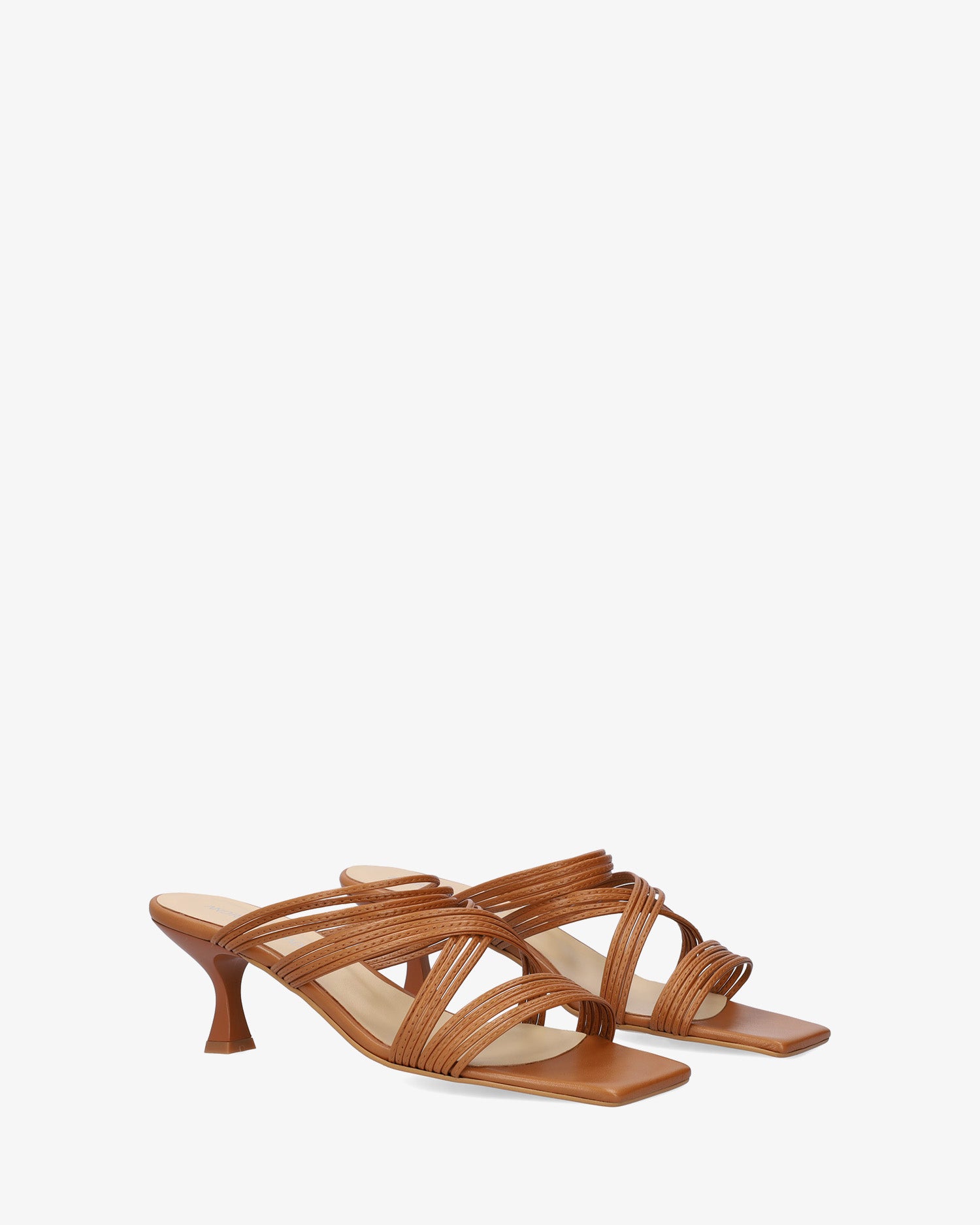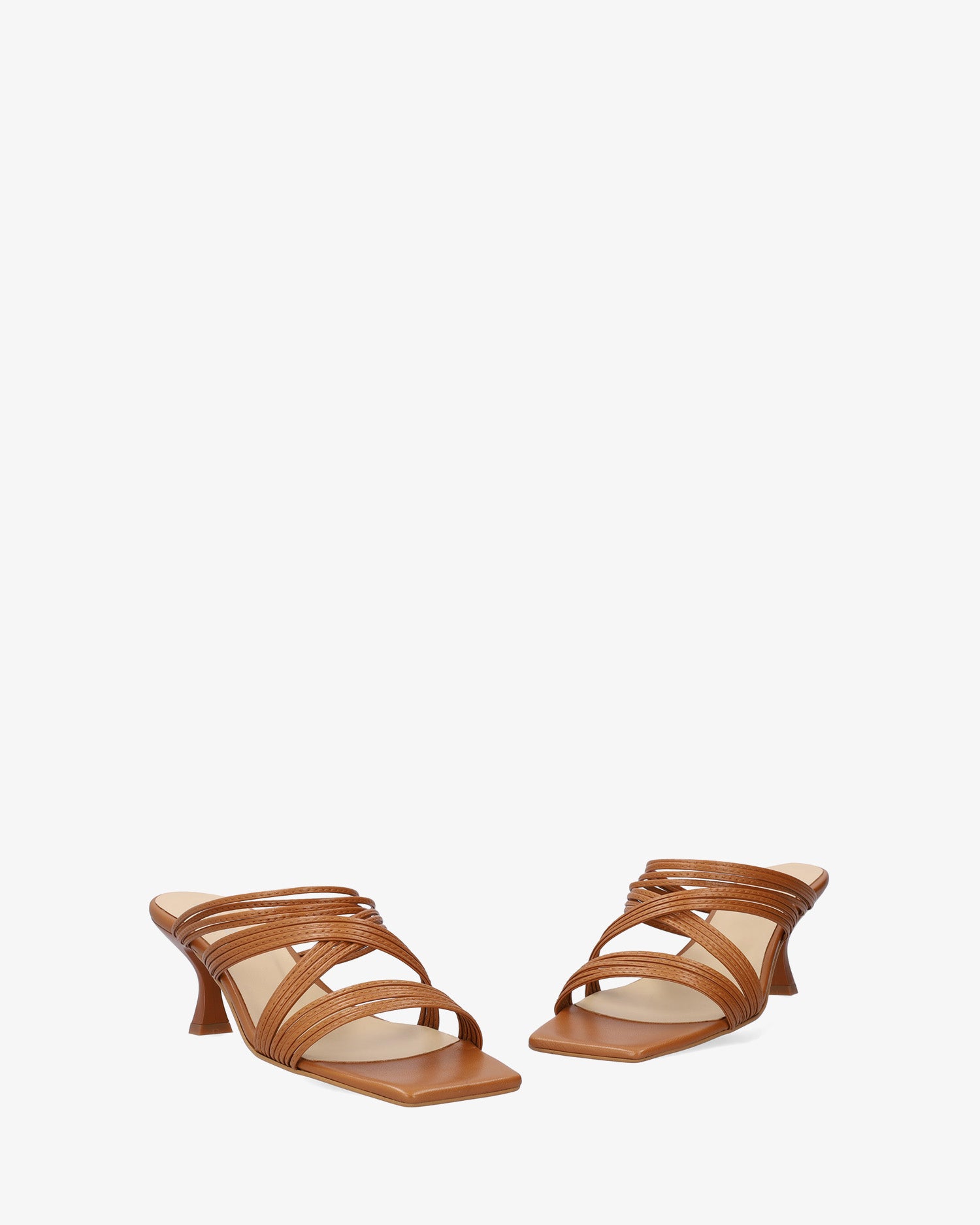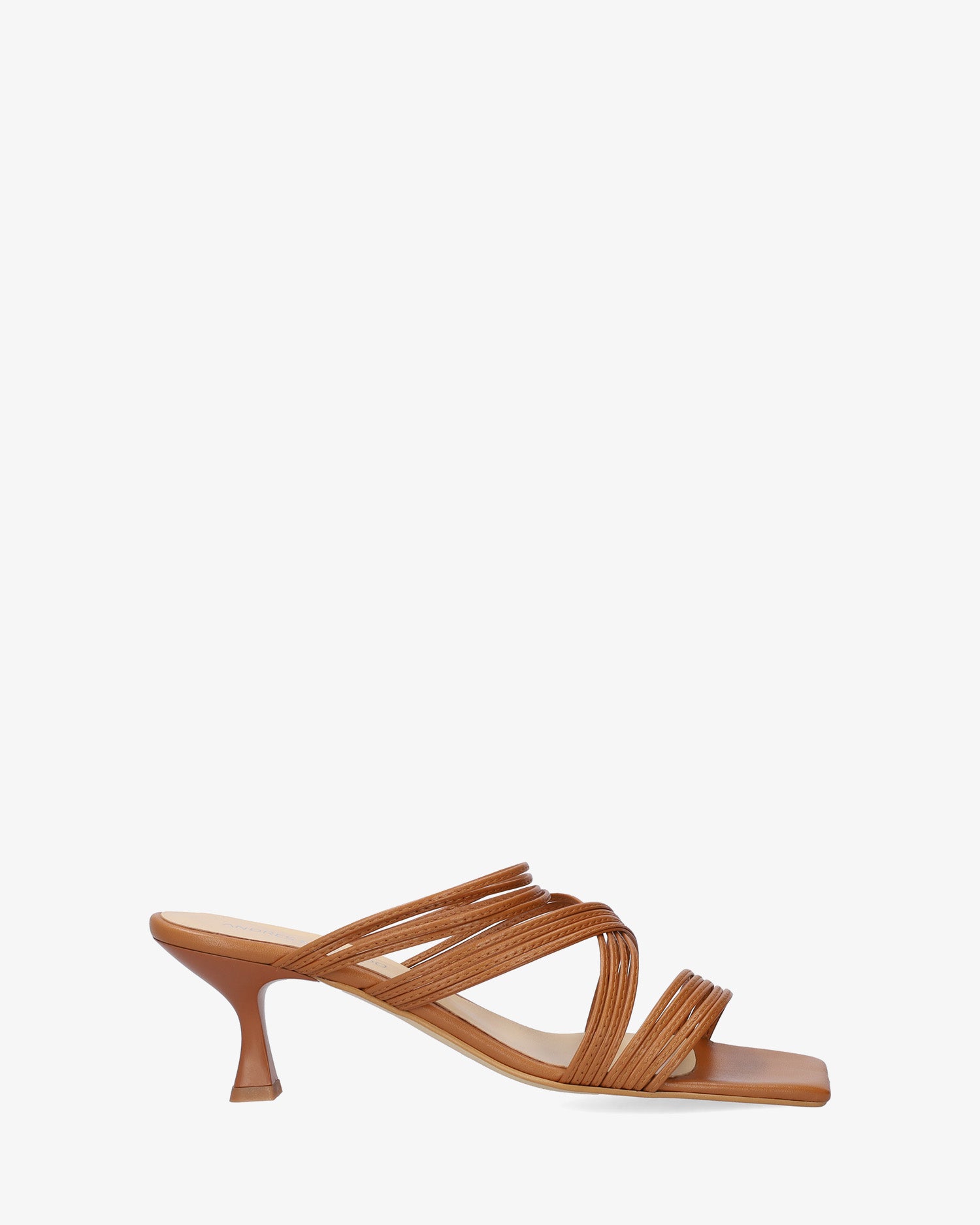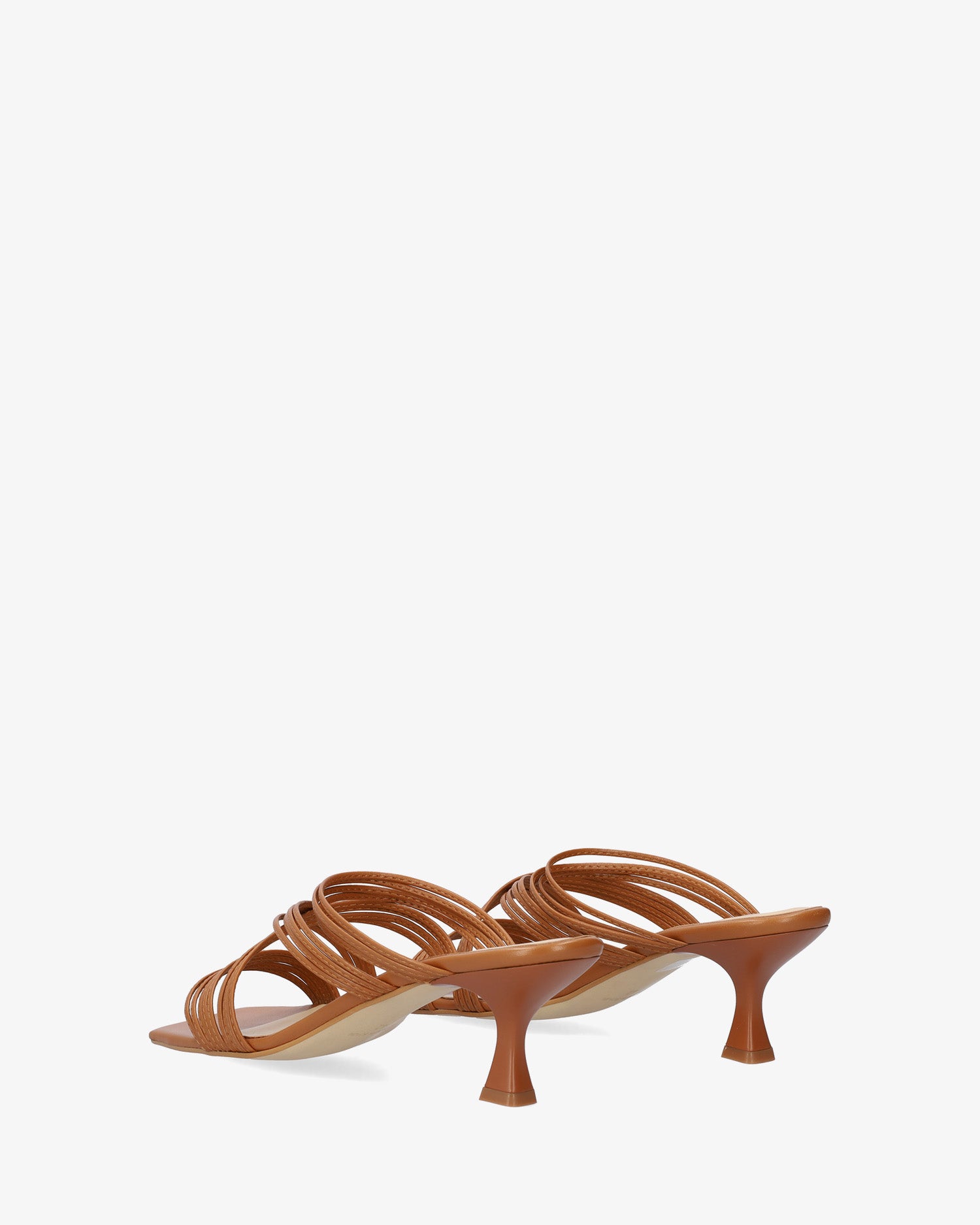 Kitten heel sandals in brown leather. The design features thin straps crossed over the instep and vamp. Finished in a square toe box. The matching heel is 6,5cm /2,56`` high for small sizes from 32 to 35 EU. The heel is 7cm /2,76`` high for large sizes from 42 to 45 EU. Made in Spain