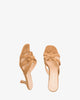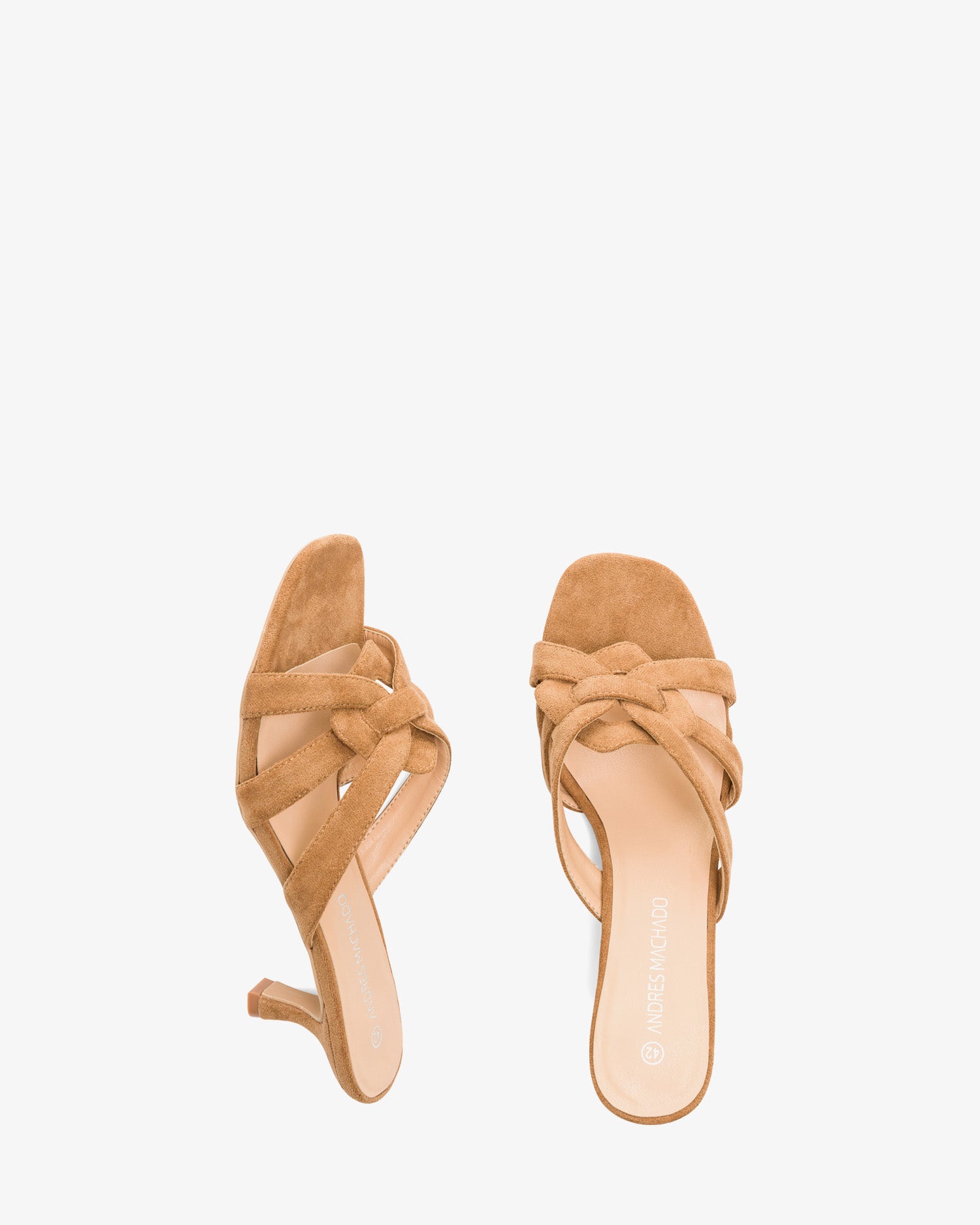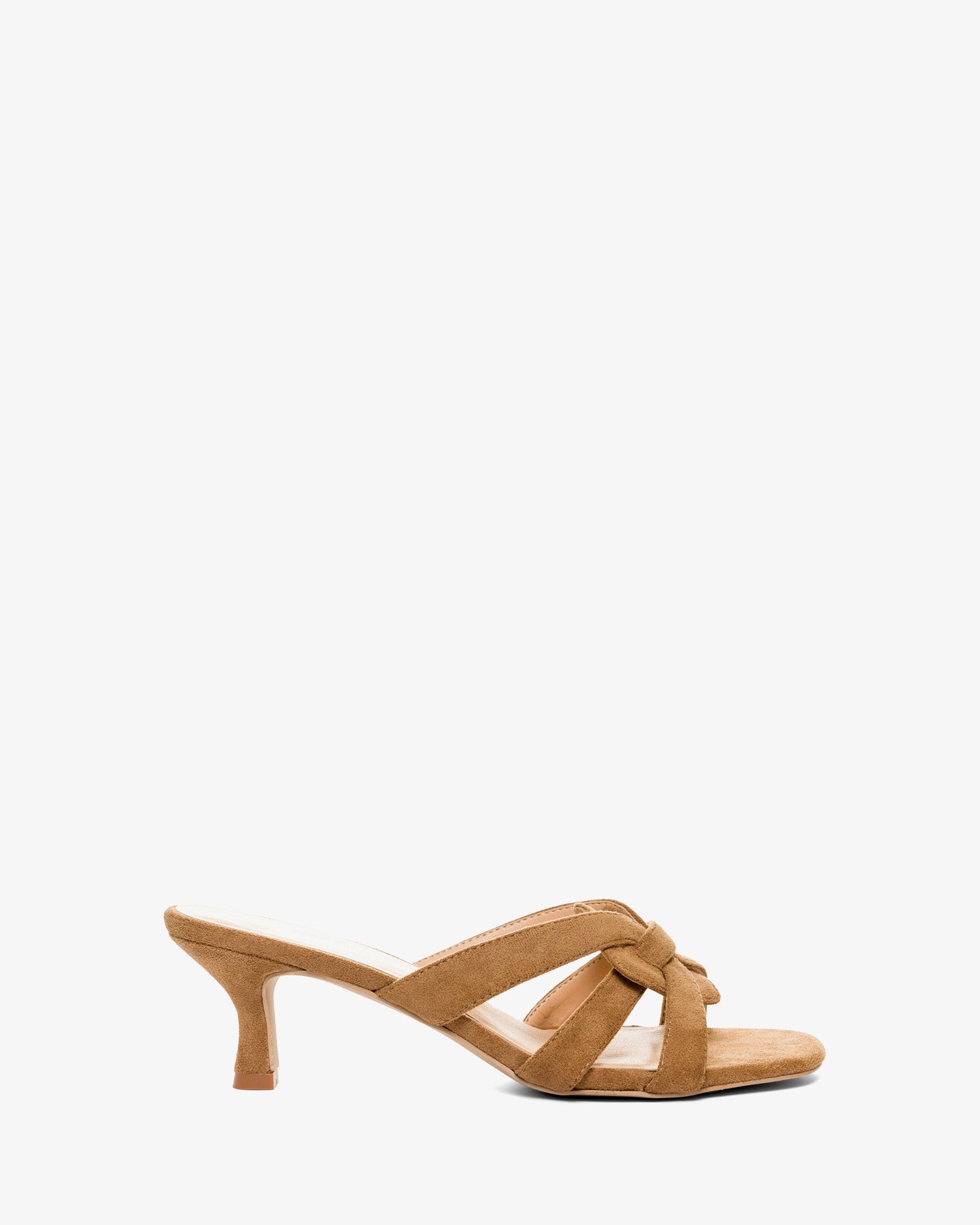 Camel colored faux suede mules featuring a kitten heel. Intertwined straps detail over the vamp. Open and square toe box. The thin, matching heel is 6,5cm /2,56`` for small sizes from 32 to 35 EU. The thin, matching heel is 7cm /2,75`` for small sizes from 42 to 45 EU.