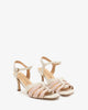 Dual color sandals in white and baby pink faux leather. Designed with white and baby pink straps over the instep. Buckled strap closure on the side, around the ankle. Open and square toe box. The mid high, lined heel is 7 cm / 2.75`` high for small sizes from 32 to 35 EU. The mid high heel is 9 cm / 3.54`` high for large sizes from 42 to 45 EU.