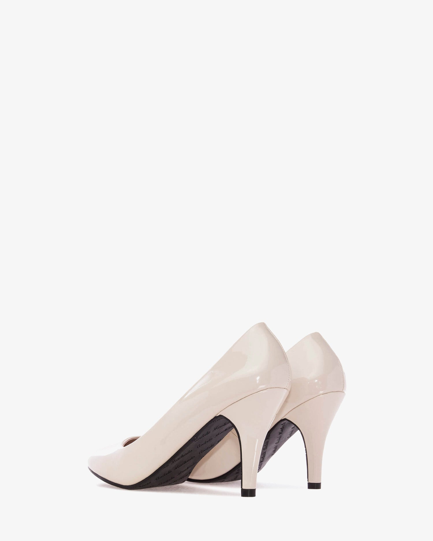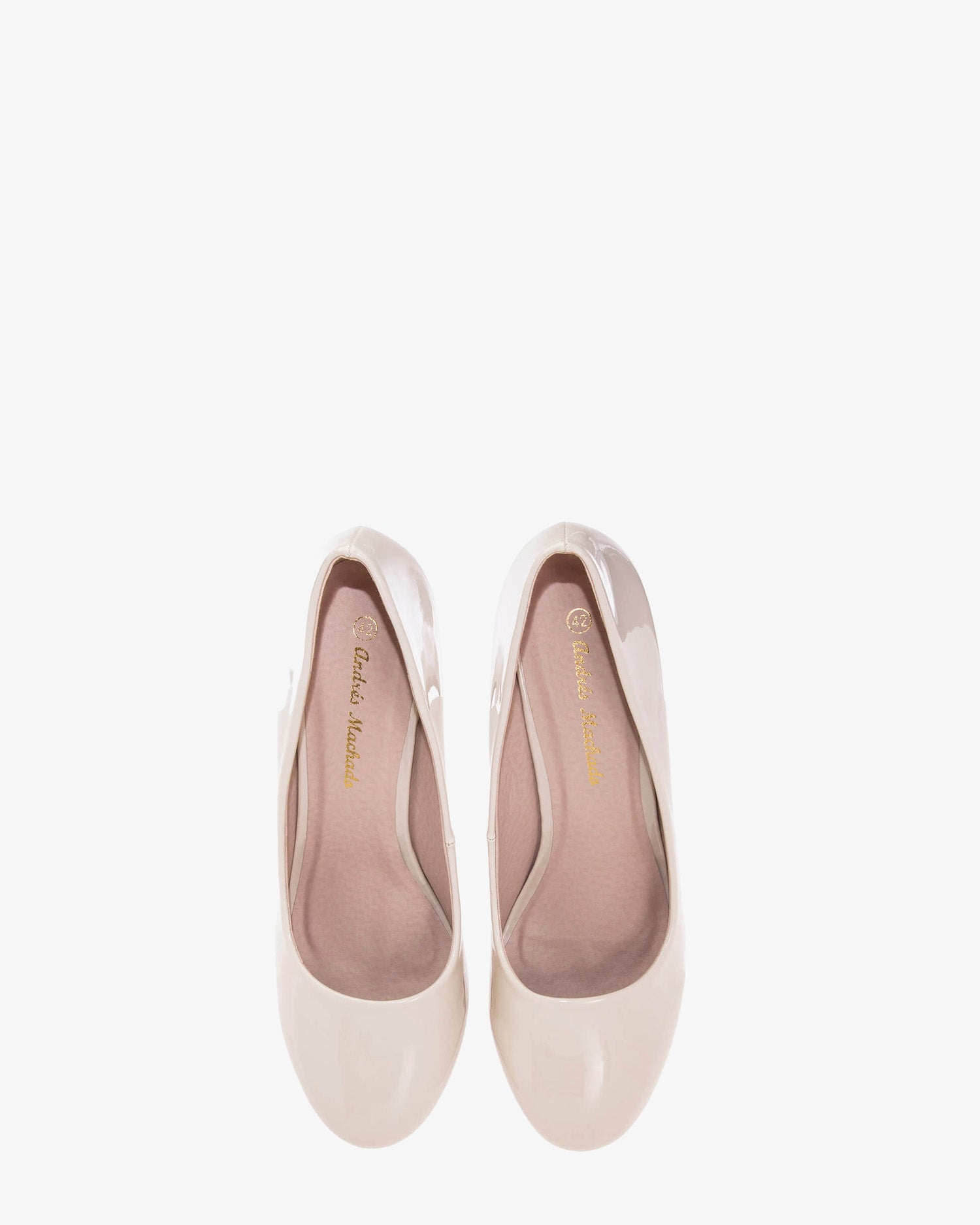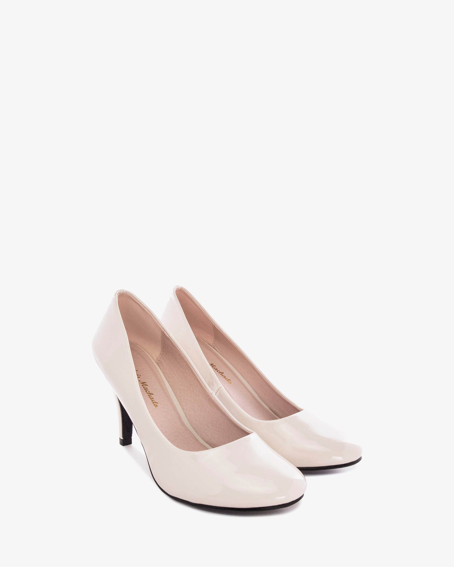 Classically elegant beige patent pumps with round toe. The padded insole and lining are made of beige leather. Available in a very wide range of sizes: Small, Medium and Big from UK 0.5 to 11.5 / EU 32 to 46. Heel of 3.74" / 9.5 cm for sizes from UK 0.5 to 5.5 / EU 32 to 39. Heel of 3.54" / 9 cm for sizes from UK 0.5 to 2.5 / EU 32 to 35. Heel of 3.74" / 9.5 cm for sizes from UK 3.5 to 5.5 / EU 36 to 39. Heel of 3.93" / 10 cm for sizes from UK 6.5 to 11.5 / EU 40 to 46. This model fits small, we recommend taking one size larger than usual.