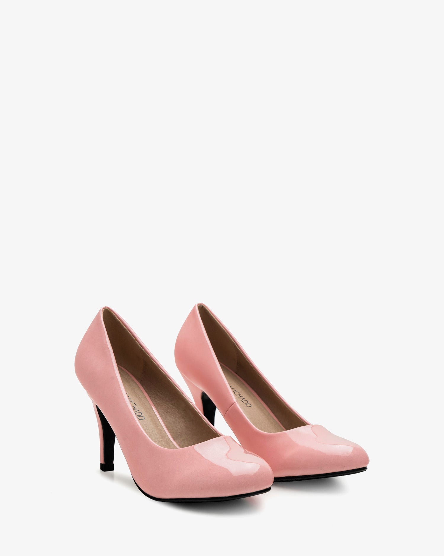 Classically elegant pink patent pumps with round toe. The padded insole and lining are made of beige leather. Available in a very wide range of sizes: Small, Medium and Big from UK 0.5 to 11.5 / EU 32 to 46. Heel of 3.74" / 9.5 cm for sizes from UK 0.5 to 5.5 / EU 32 to 39. Heel of 3.54" / 9 cm for sizes from UK 0.5 to 2.5 / EU 32 to 35. Heel of 3.74" / 9.5 cm for sizes from UK 3.5 to 5.5 / EU 36 to 39. Heel of 3.93" / 10 cm for sizes from UK 6.5 to 11.5 / EU 40 to 46. This model fits small, we recommend taking one size larger than usual.