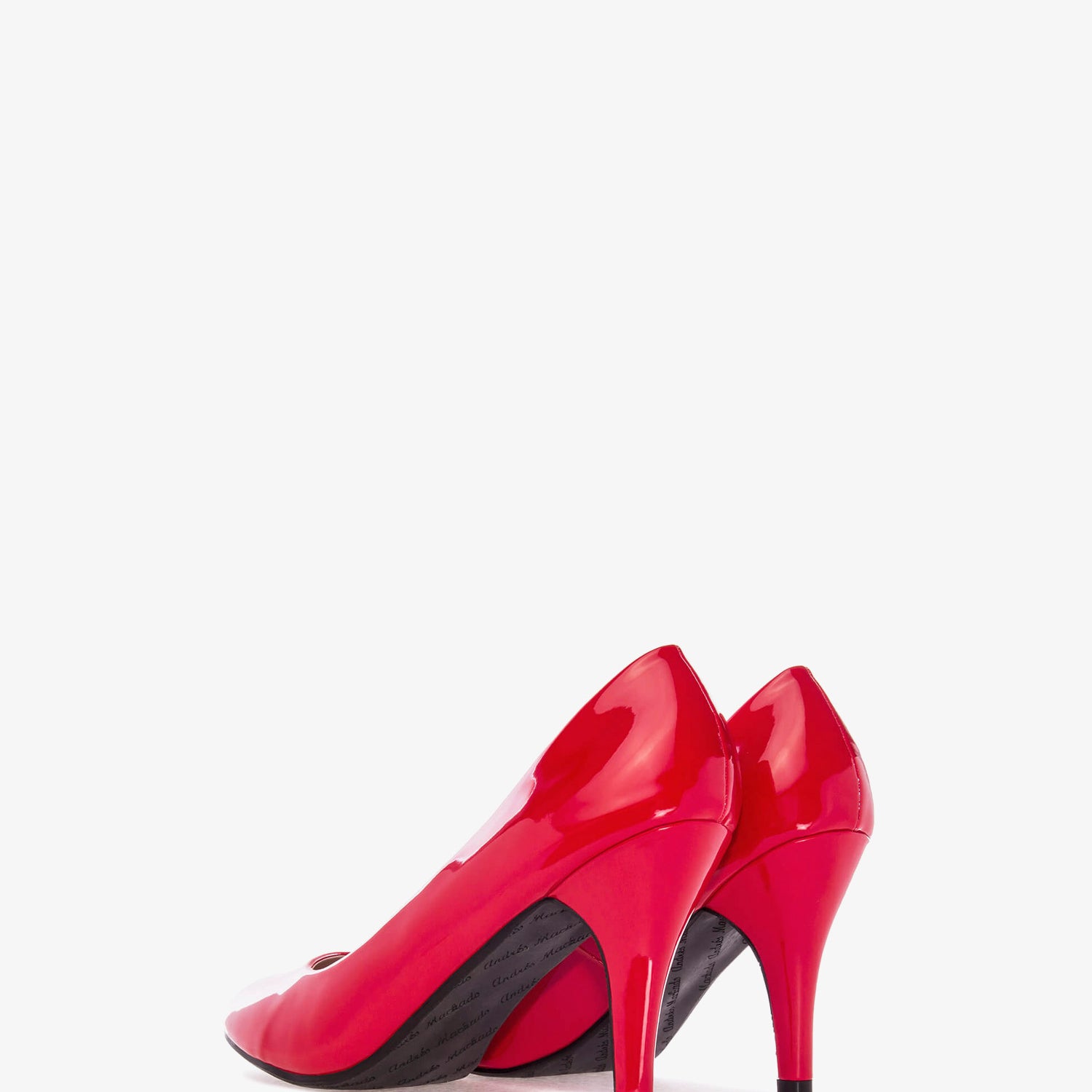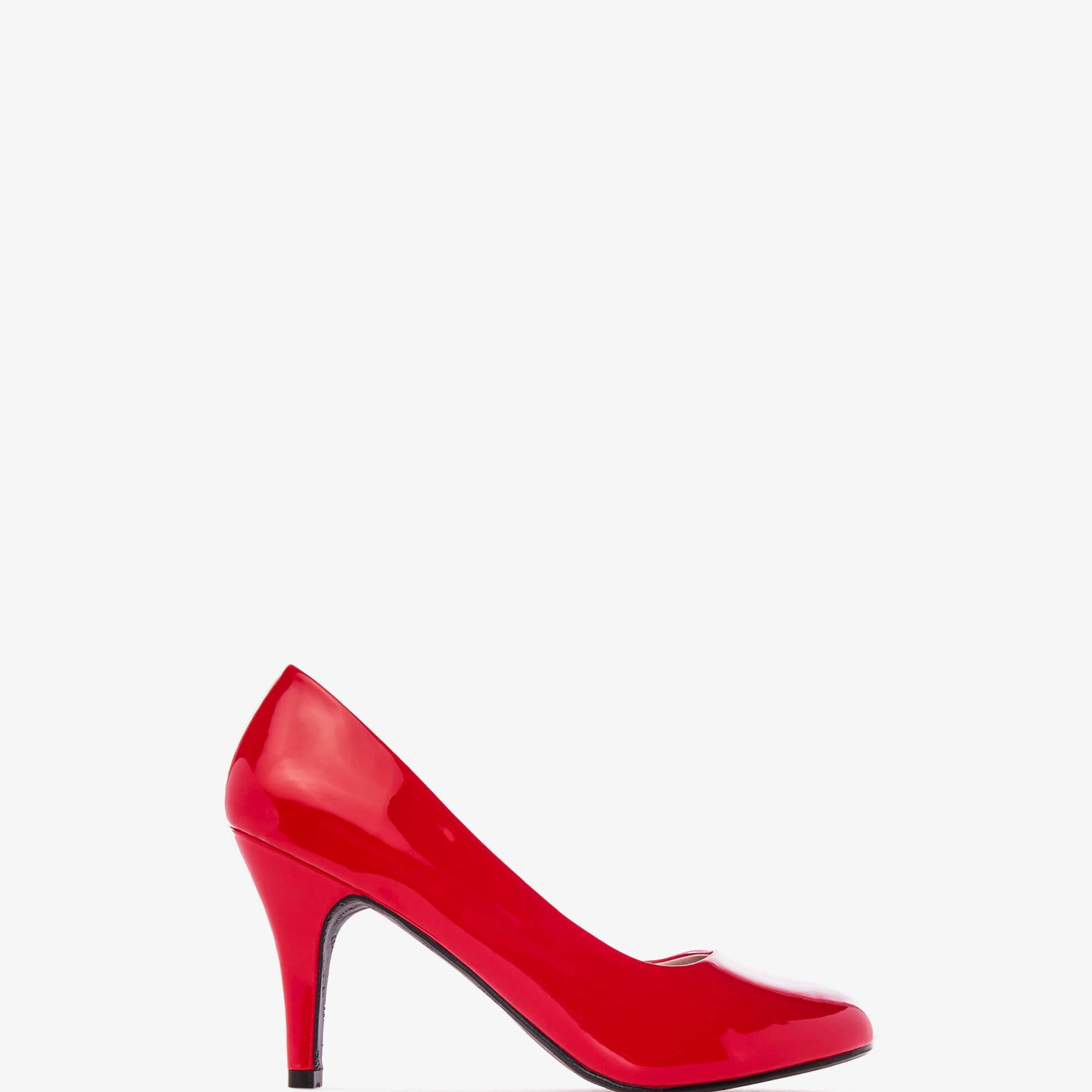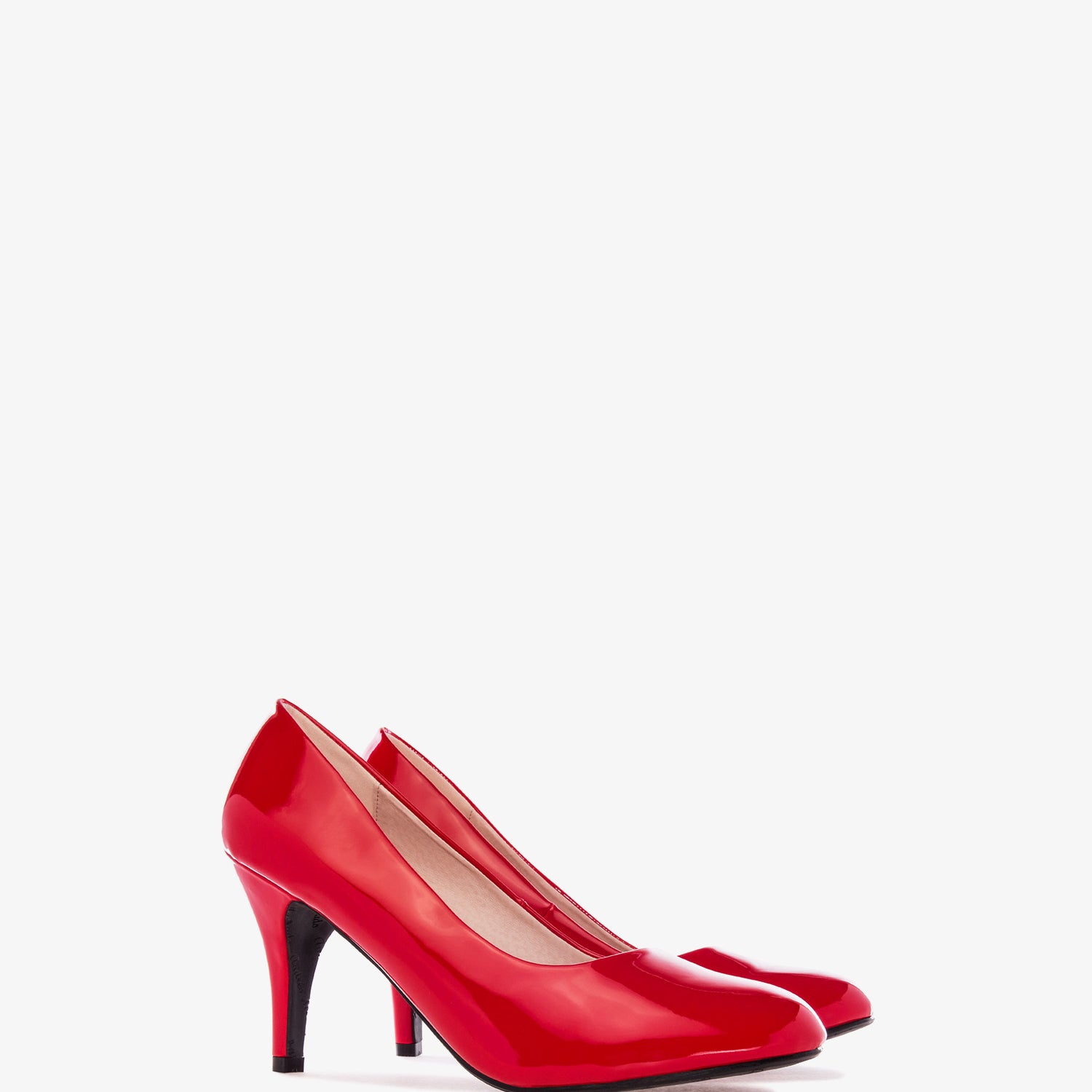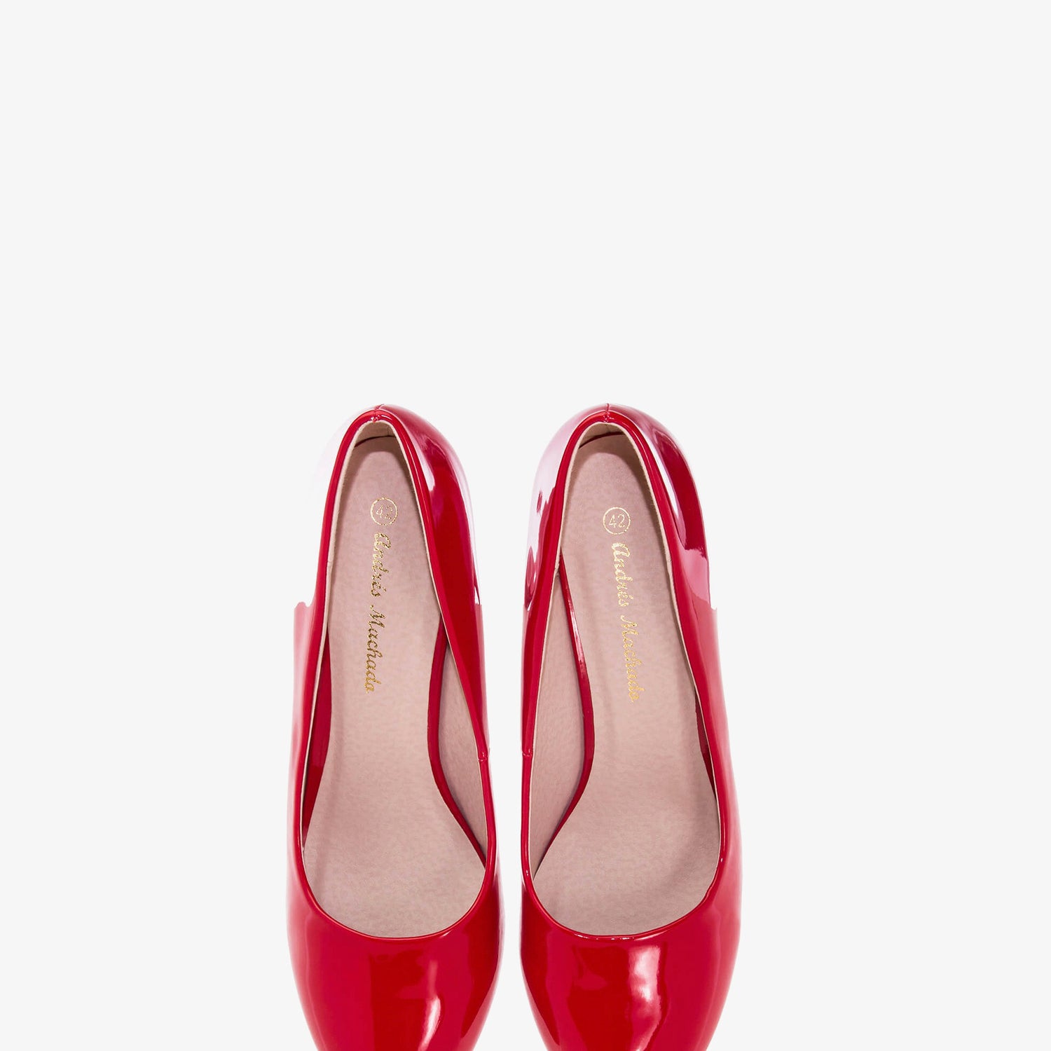 Classically elegant red patent pumps with round toe. The padded insole and lining are made of beige leather. Available in a very wide range of sizes: Small, Medium and Big from UK 0.5 to 11.5 / EU 32 to 46. Heel of 3.74" / 9.5 cm for sizes from UK 0.5 to 5.5 / EU 32 to 39. Heel of 3.54" / 9 cm for sizes from UK 0.5 to 2.5 / EU 32 to 35. Heel of 3.74" / 9.5 cm for sizes from UK 3.5 to 5.5 / EU 36 to 39. Heel of 3.93" / 10 cm for sizes from UK 6.5 to 11.5 / EU 40 to 46. This model fits small, we recommend taking one size larger than usual.