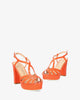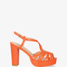 Embossed orange faux patent sandals