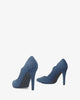 Fine tip stilettos in dark blue faux suede.
