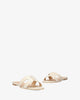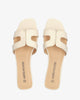 Flat slide-style sandal in soft material with a square toe and two connected tone-on-tone straps. Available in small sizes 32 to 35 and large sizes 42 to 46.