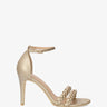 Gold faux leather heeled sandals with matching braided straps over the open toe box. Buckled strap closure around the ankle and matching counter. The thin, matching heel is 9cm / 3,54`` for small sizes from 32 to 35 EU. The thin, matching heel is 10,5 cm/4,13`` for small sizes from 42 to 45 EU.