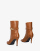 Heeled booties in soft camel faux leather
