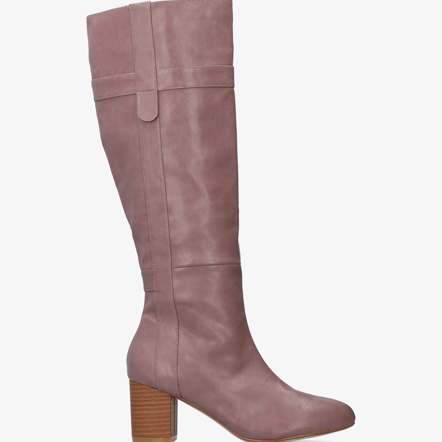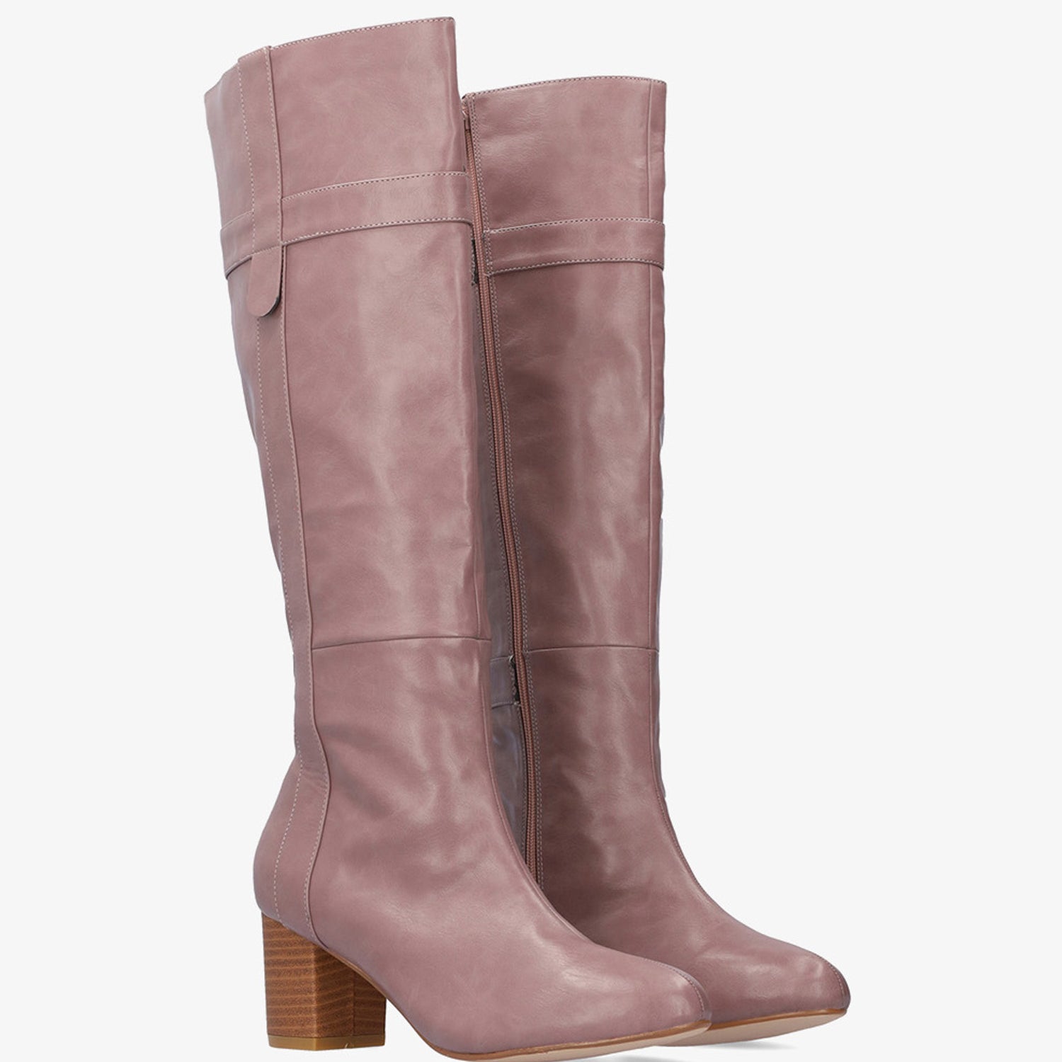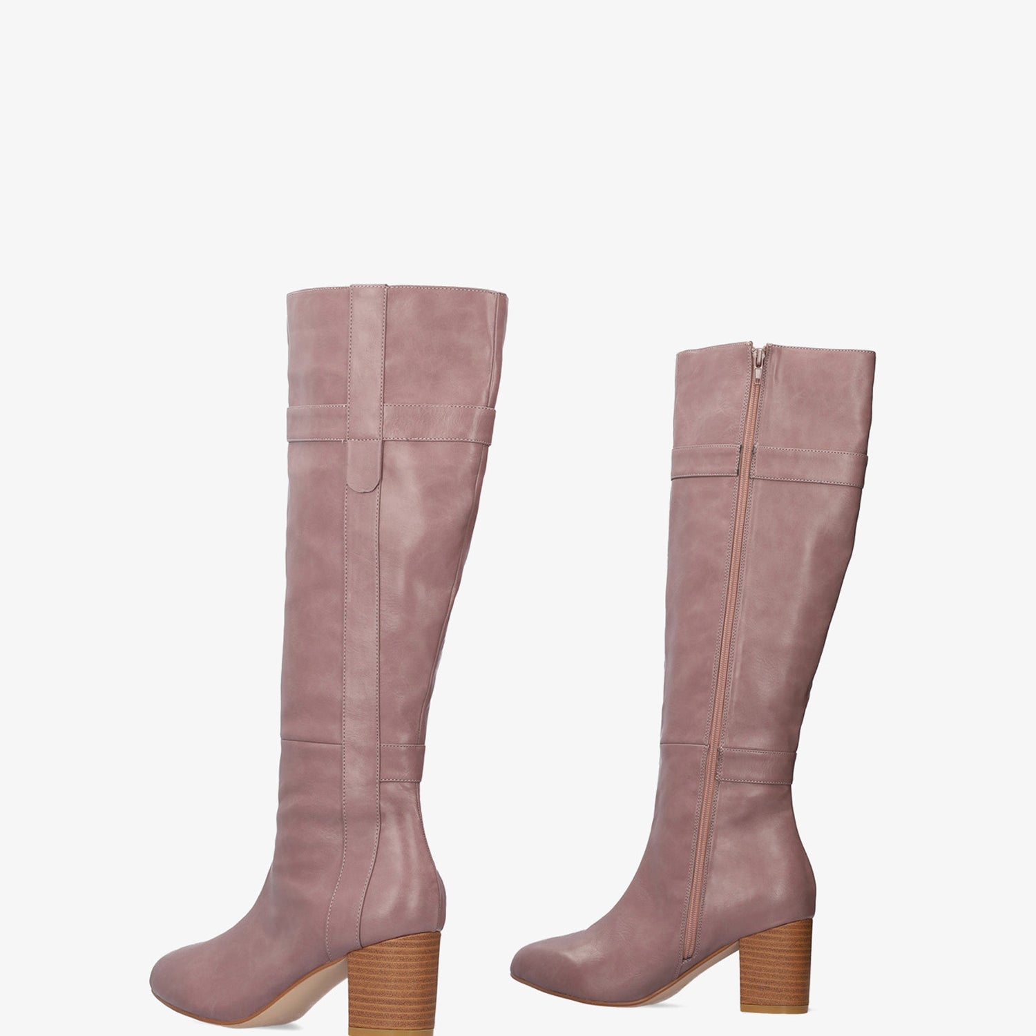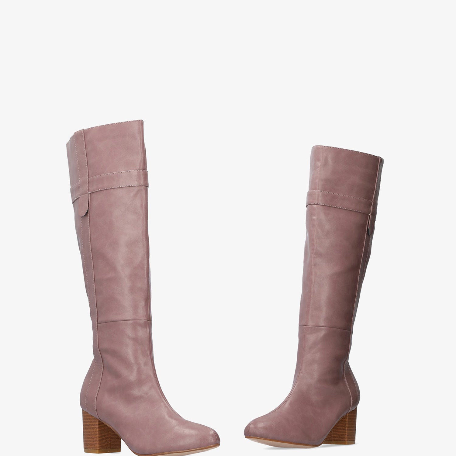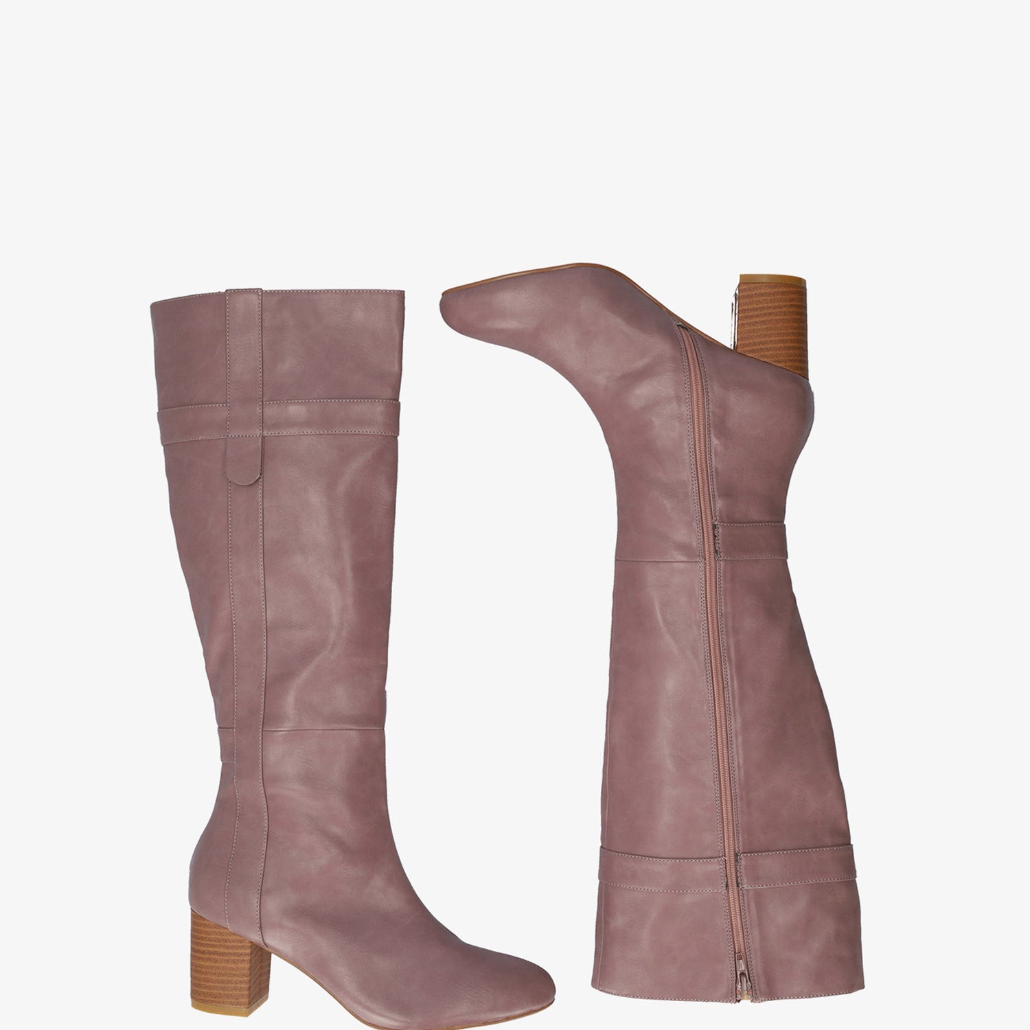 Flat high-calf boots in camel leather. Matching zipper closure on the inner shaft. Decorative matching strap around the shaft and one handle on each side. Rounded toe.Black outsole. Wooden effect heel is 4cm high for large sizes from 42 to 45 EU. This model fits small, we recommend taking one size larger than usual.