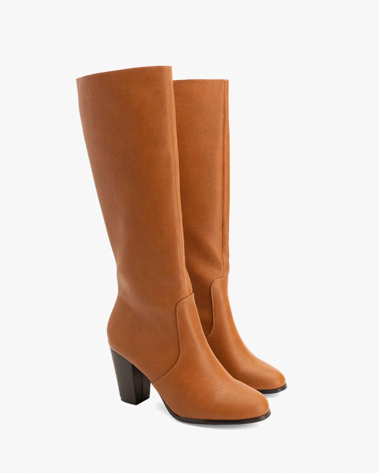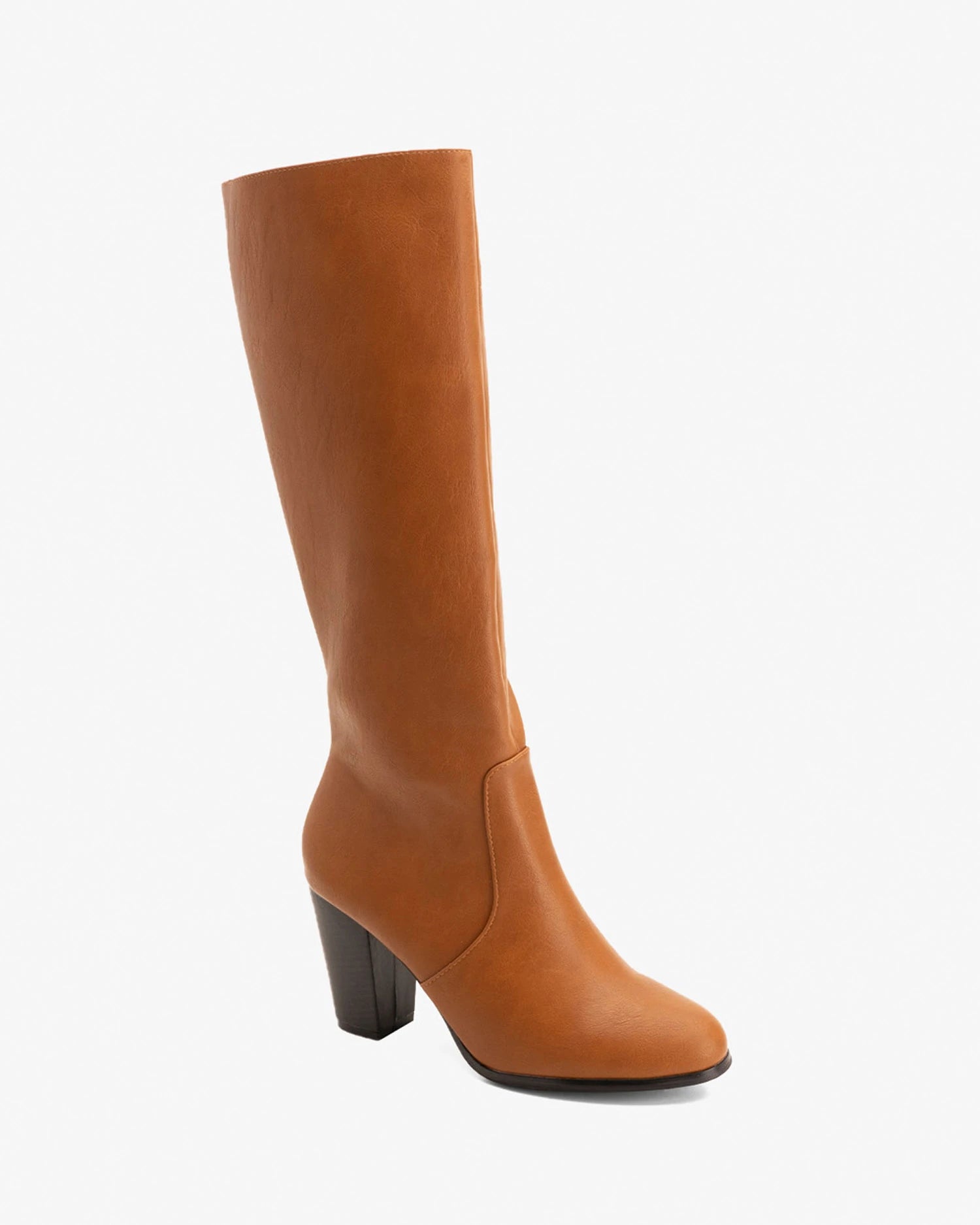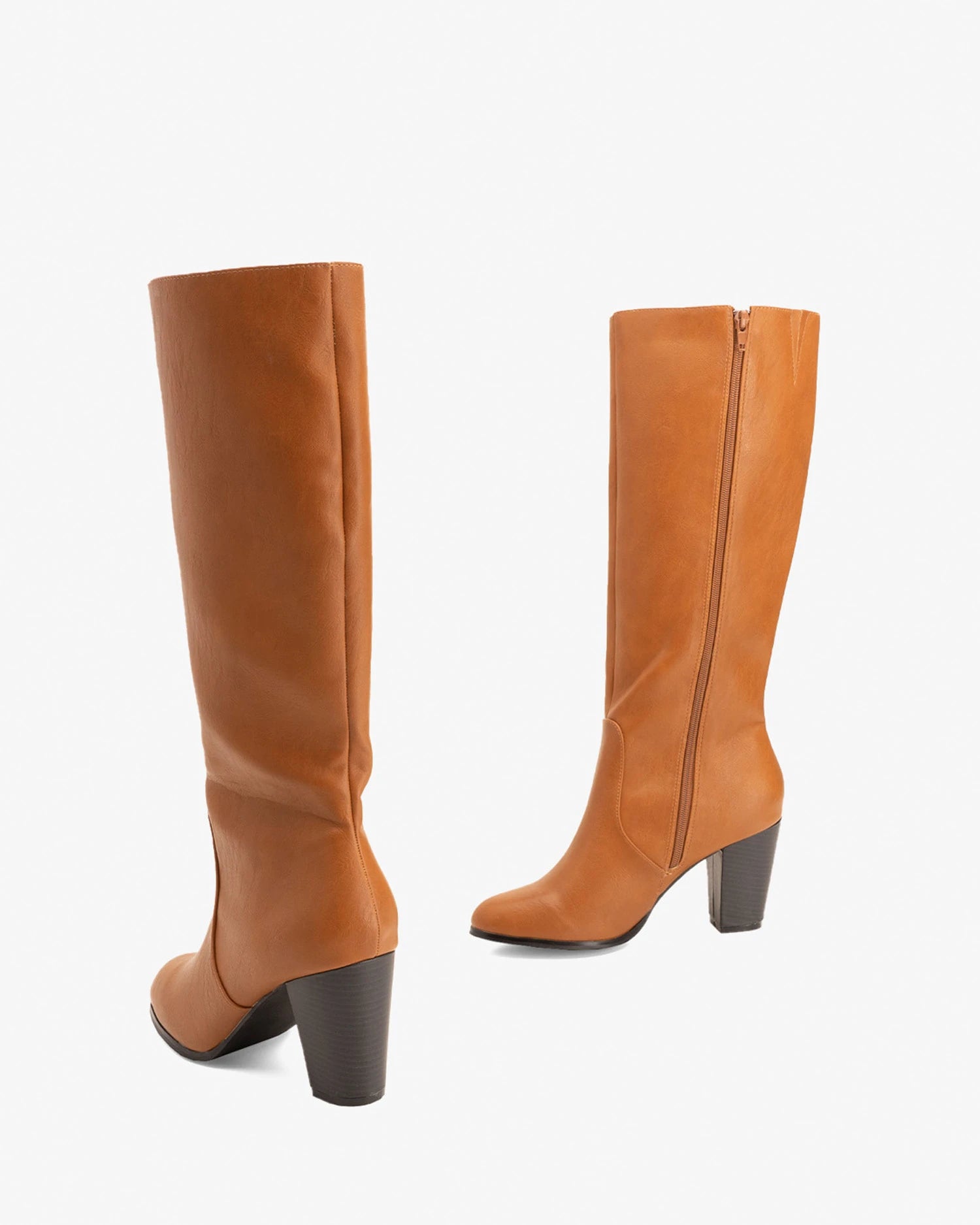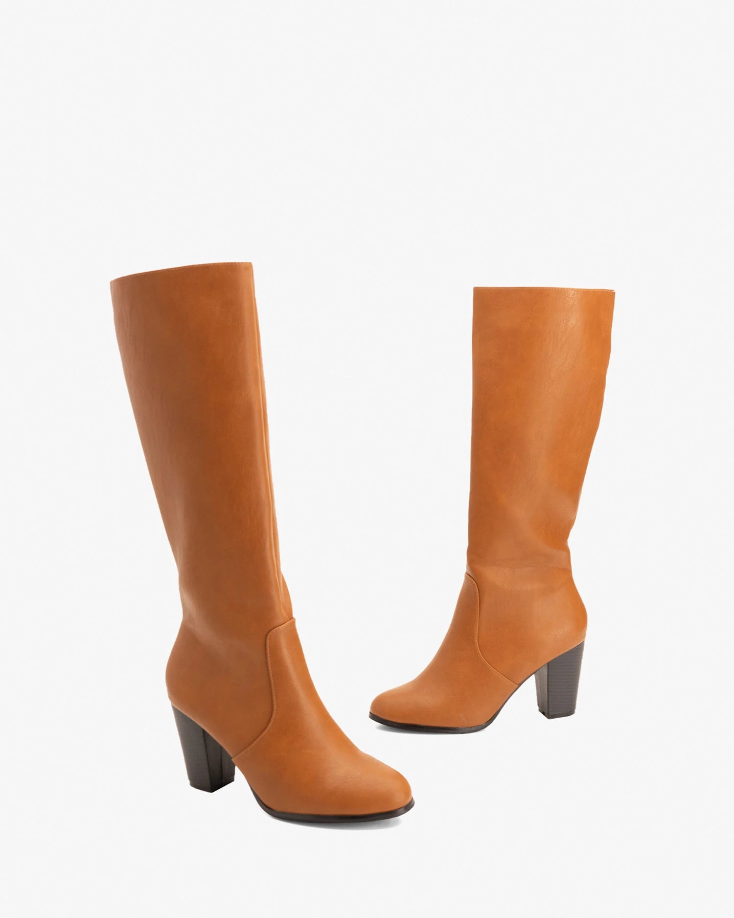 High boot in Camel colored faux leather. Matching straps around the ankle with decorative buckles. Matching Zip closure on the inside. Wide wood effect 1.77 inch / 4,5 cm high heel for small sizes from UK 0.5 to 3 / EU 32 to 35 and 2.36 inch / 6,0 cm high for large sizes from UK 8 to 11 / EU 42 to 45. This model fits small, we recommend taking one size larger than usual. According to our customers' feedback this model has a narrower boot shaft than usual.