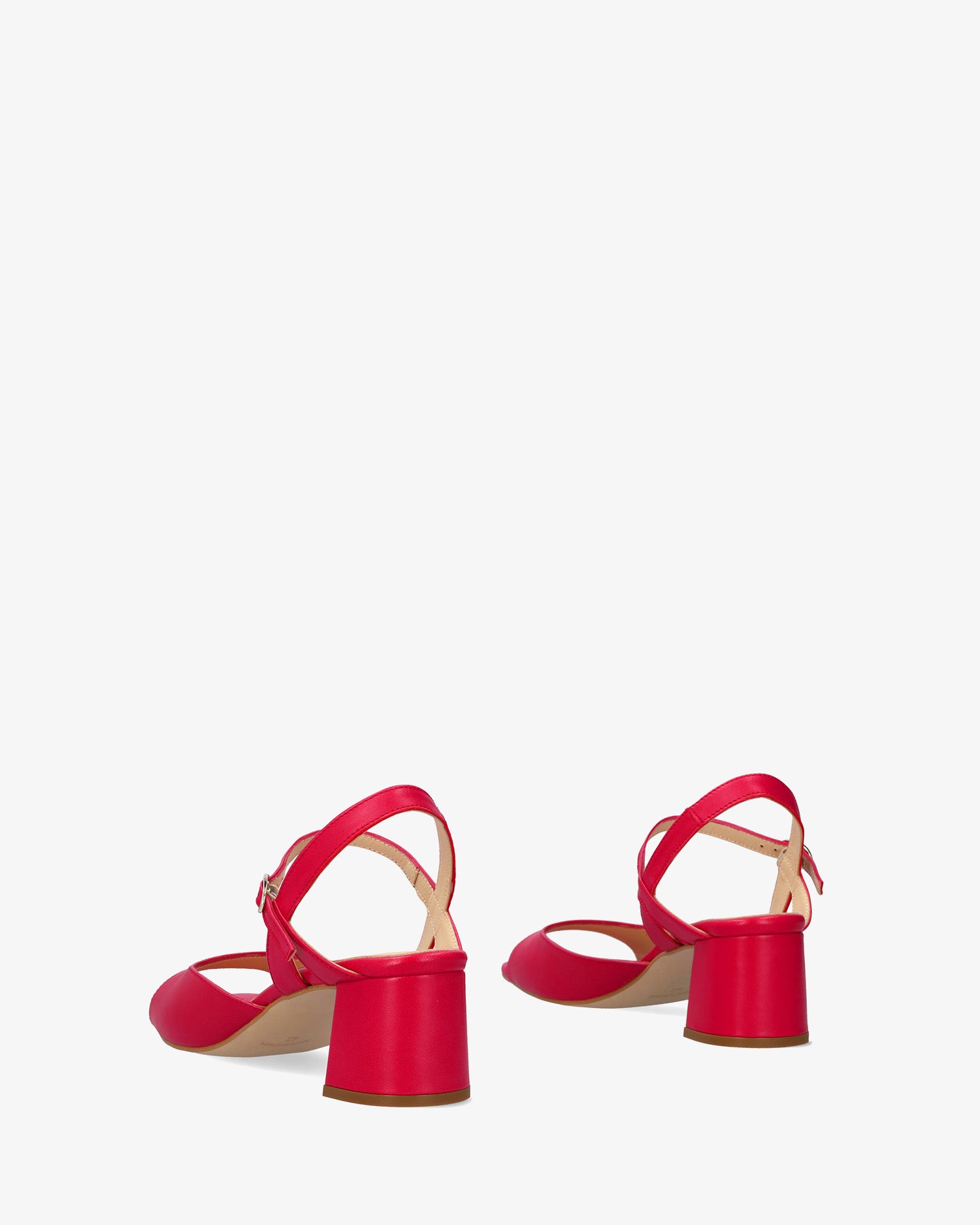 Heeled sandals in Fuchsia leather. Features a rounded heel and a front strap design. Secured with an ankle strap buckle fastening. Open square-toe finish. Beige leather lining. Covered heel measuring 1,968 inch for smaller sizes (32 to 35) and 2,165 inch for larger sizes (42 to 45). Made in Spain.