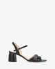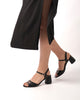 Heeled leather sandals in black colour