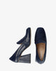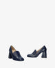 Heeled loafers in navy leather