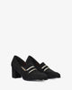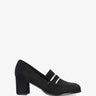 Heeled moccasins in black-colored faux suede