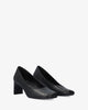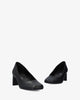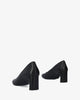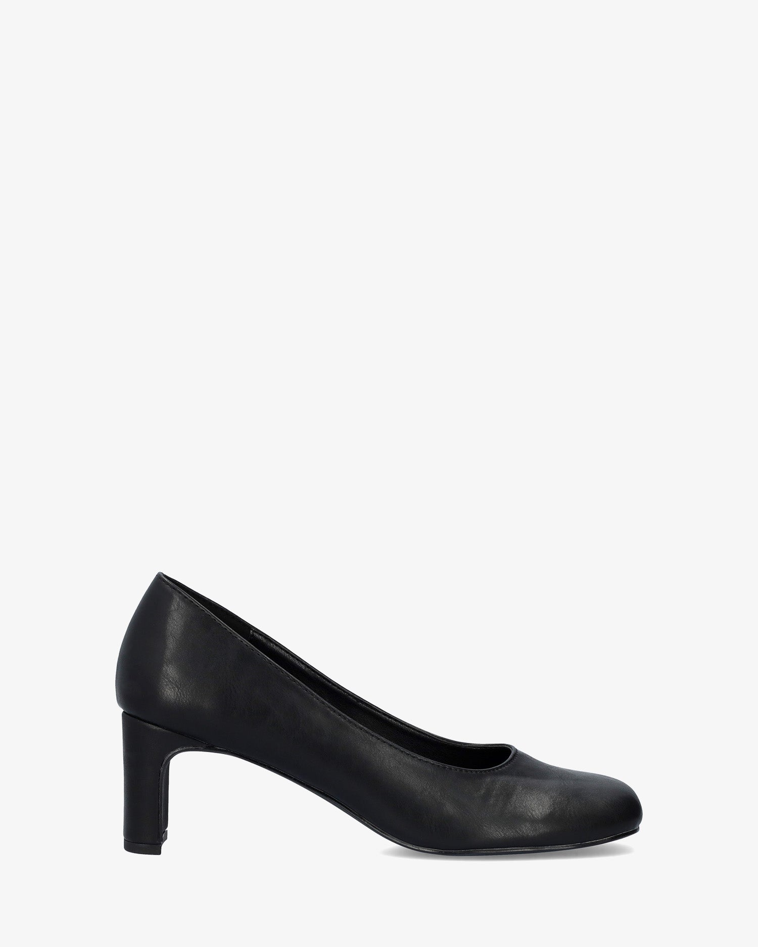Heeled pumps in soft black faux leather. This pointy-toed pumps feature a mid-squared lined heel which measures 7cm / 2,75" for small sizes from 32 to 35 and 7cm / 2,75" for large sizes from 42 to 45.