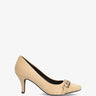 Heeled shoes in beige faux suede with chain link detail