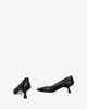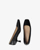 Heeled shoes in black leather. Finished in a square toe box. Beige leather inner lining. The patent lined kitten heel is 5.5 cm / 2.16`` high for small sizes from 32 to 35 EU, 5.5 cm / 2.16`` high for medium sizes from 36 to 41 EU and 6 cm / 2.36`` high for large sizes from 42 to 45 EU. Made in Spain.
