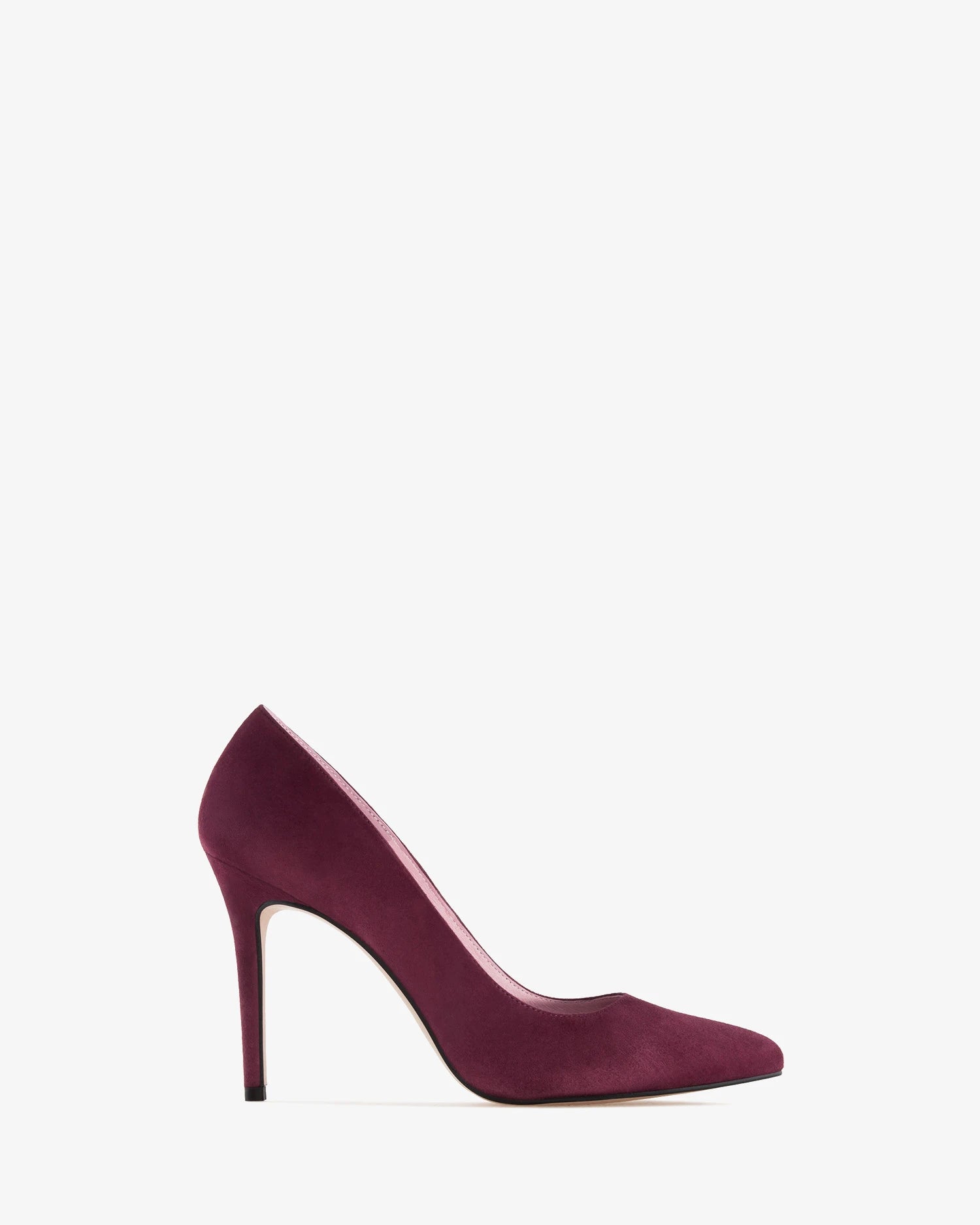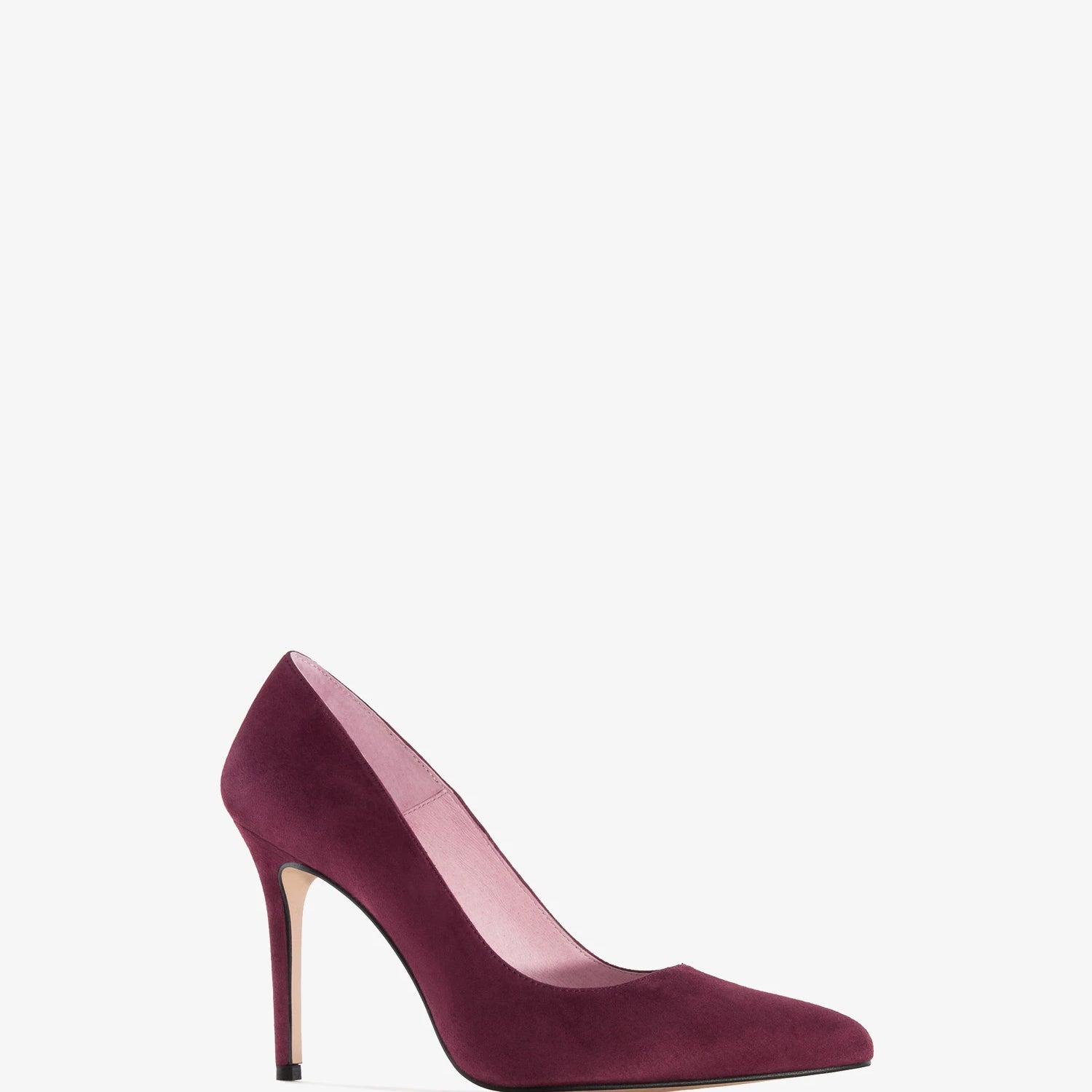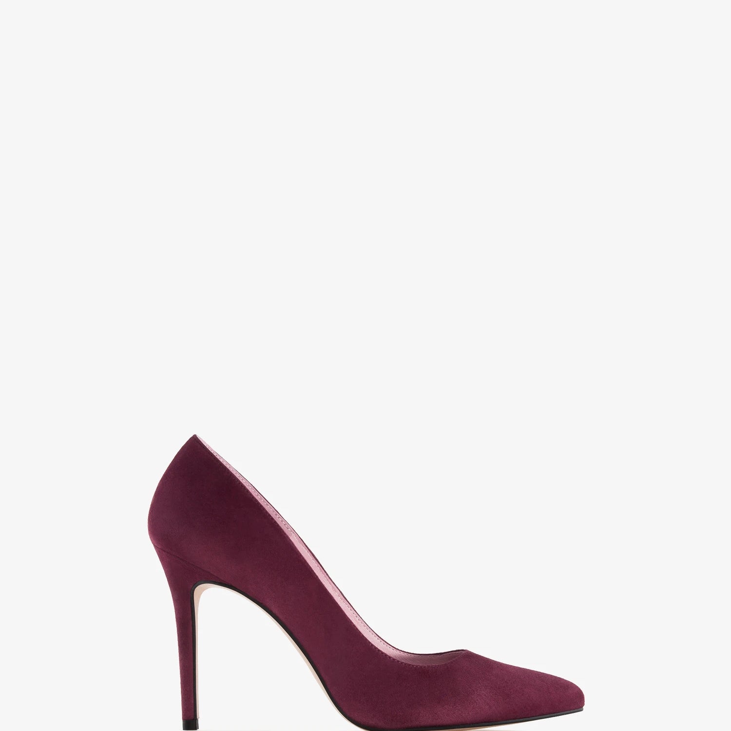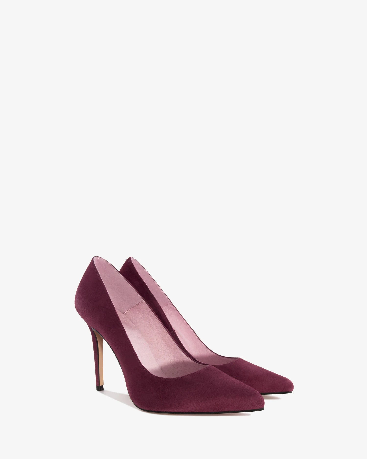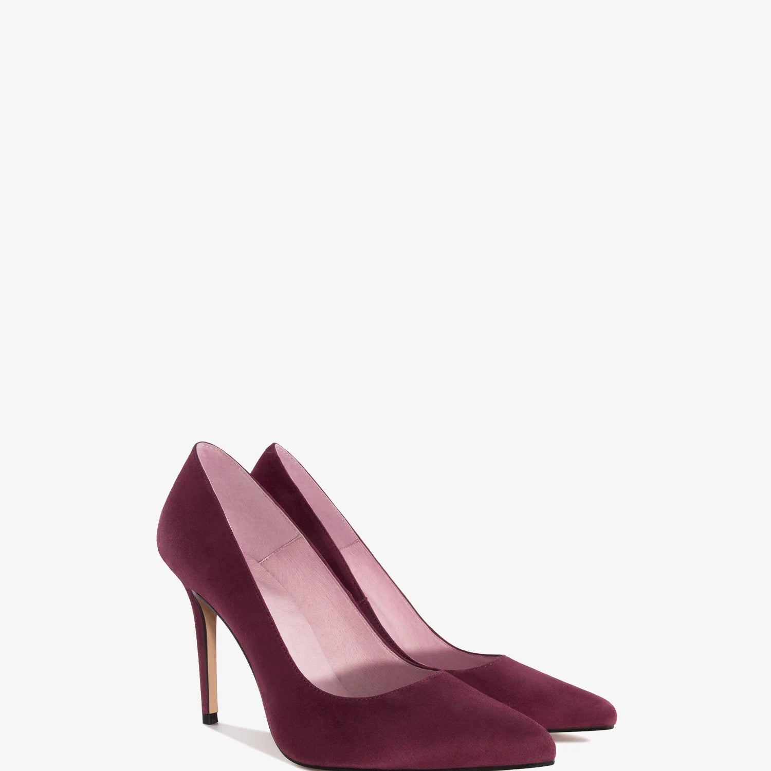 Pointed-toe stilettos with, both the upper and the heel, in Burgundy suede. Lining and insole in Pink leather. Stiletto heel of 3.74 inches / 9.5 cm for small sizes from EU 32 to 35. Stiletto heel of 3.93 inches / 10 cm for medium sizes from EU 36 to 41 Stiletto heel of 4.53 inches / 11.5 cm for large sizes from EU 42 to 45. Authentic Spanish craftmanship.