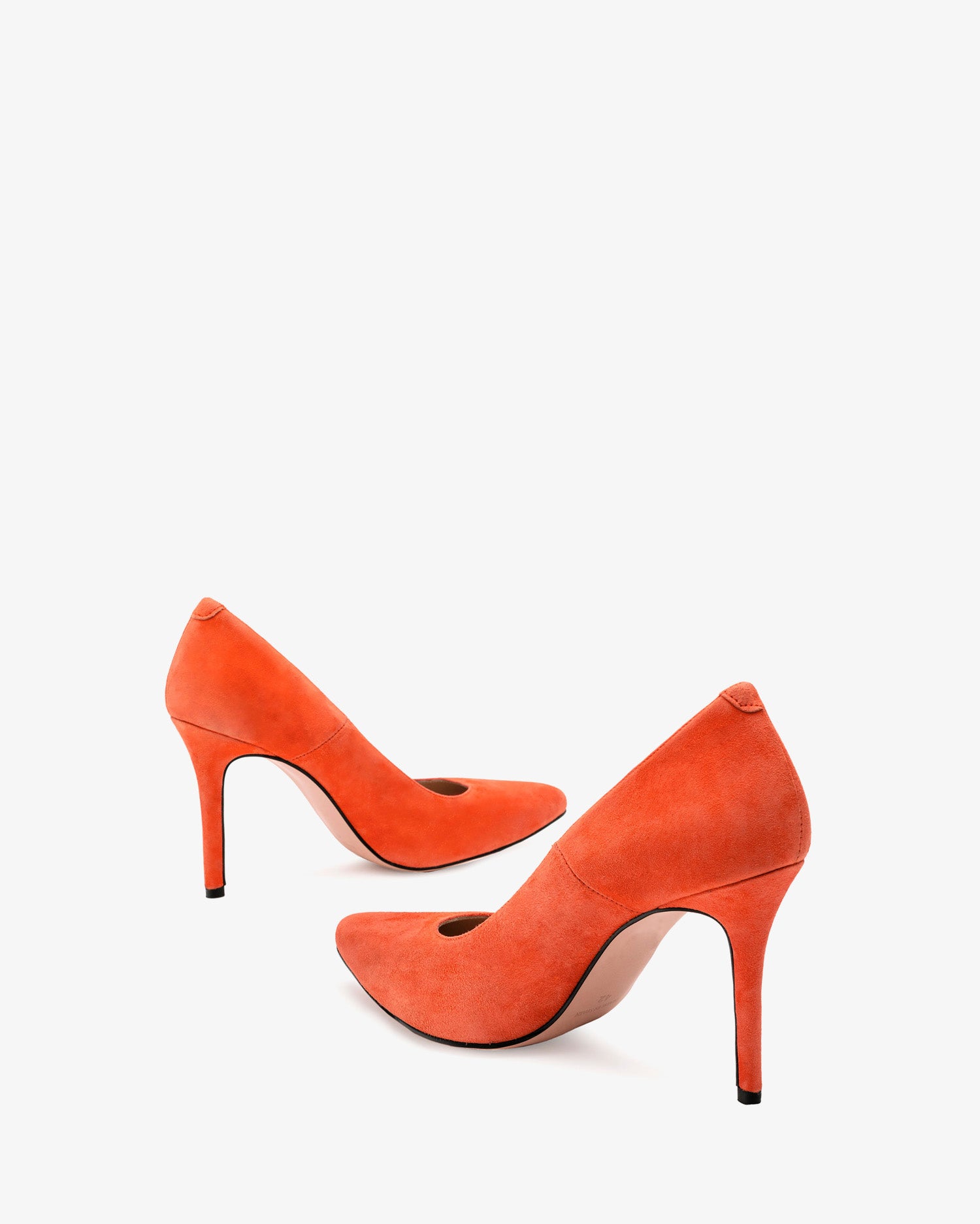 Pointed-toe stilettos with, both the upper and the heel, in Coral suede leather. Lining and insole in natural leather. Stiletto heel of 3.74 inches / 9.5 cm for small sizes from EU 32 to 35. Stiletto heel of 3.93 inches / 10 cm for medium sizes from EU 36 to 41 Stiletto heel of 4.53 inches / 11.5 cm for large sizes from EU 42 to 45. Authentic Spanish craftmanship.