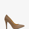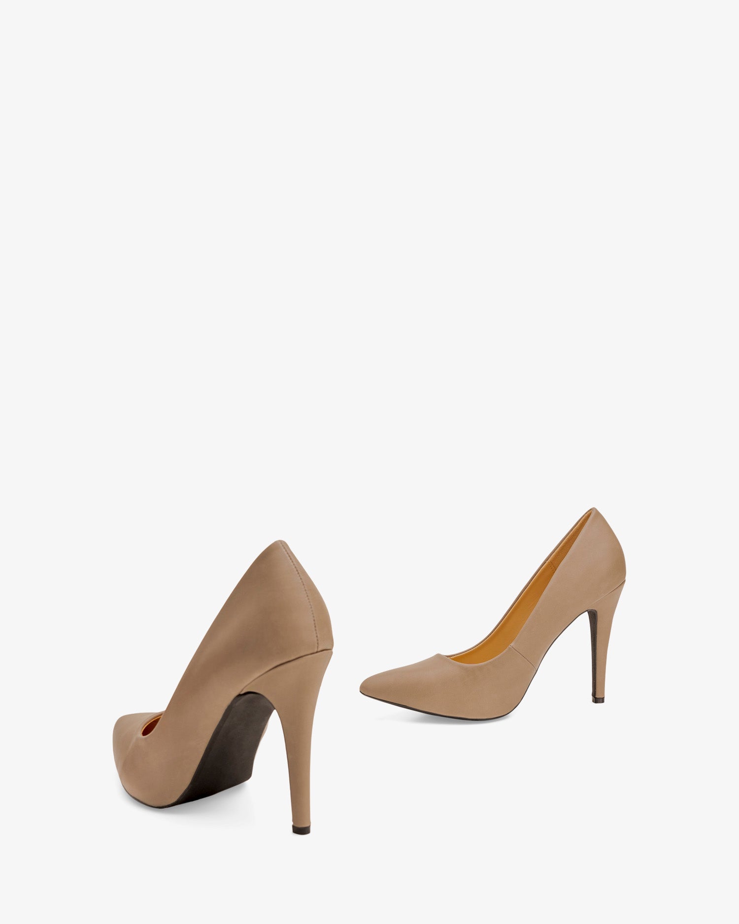 Heeled shoes in light brown faux leather finished in a pointed toe. The thin heel is 9.5 cm / 3.74`` high for small sizes from 32 to 35 EU and 11 cm / 4.33`` high for large sizes from 42 to 45 EU.