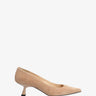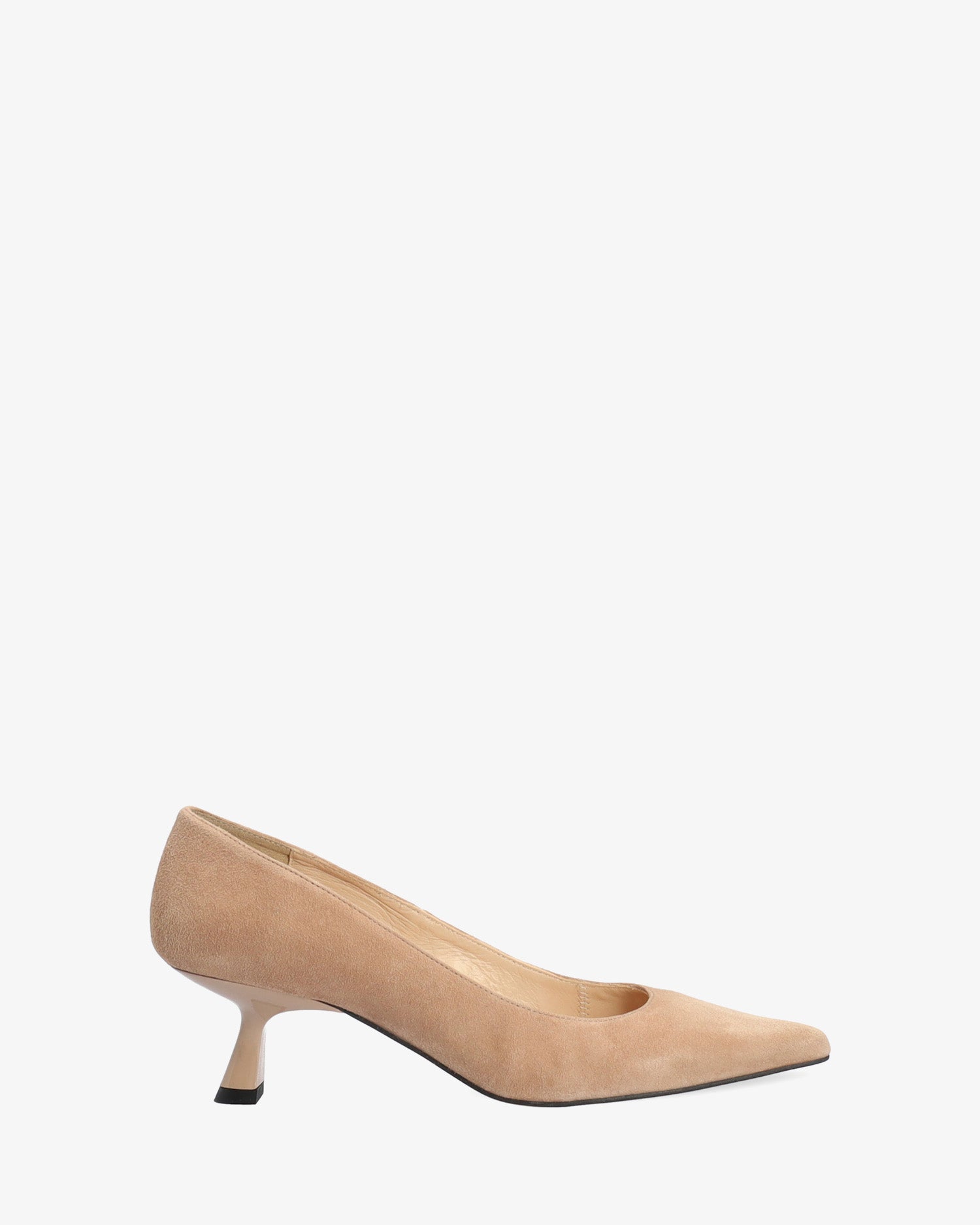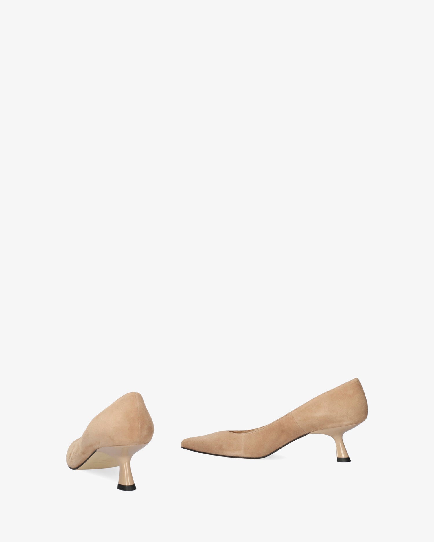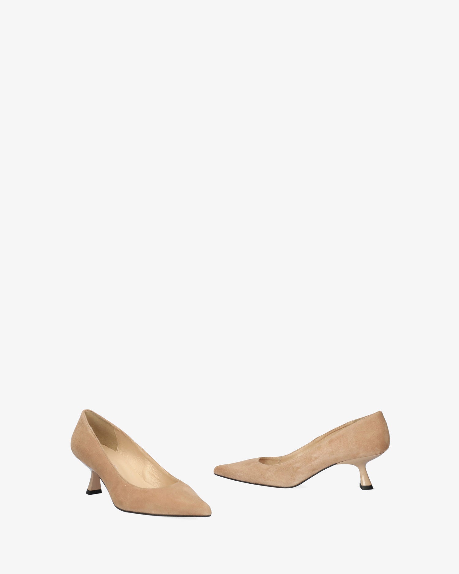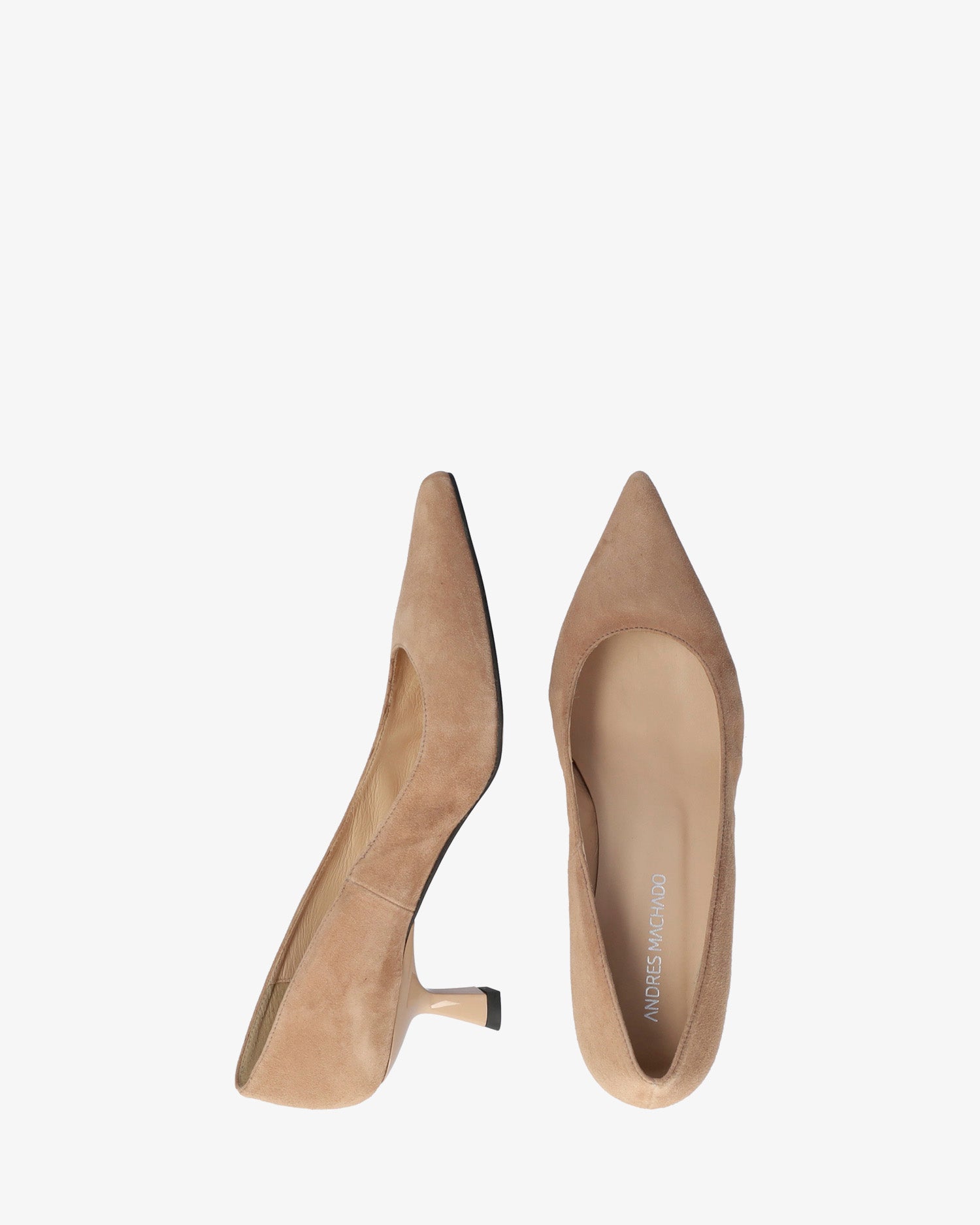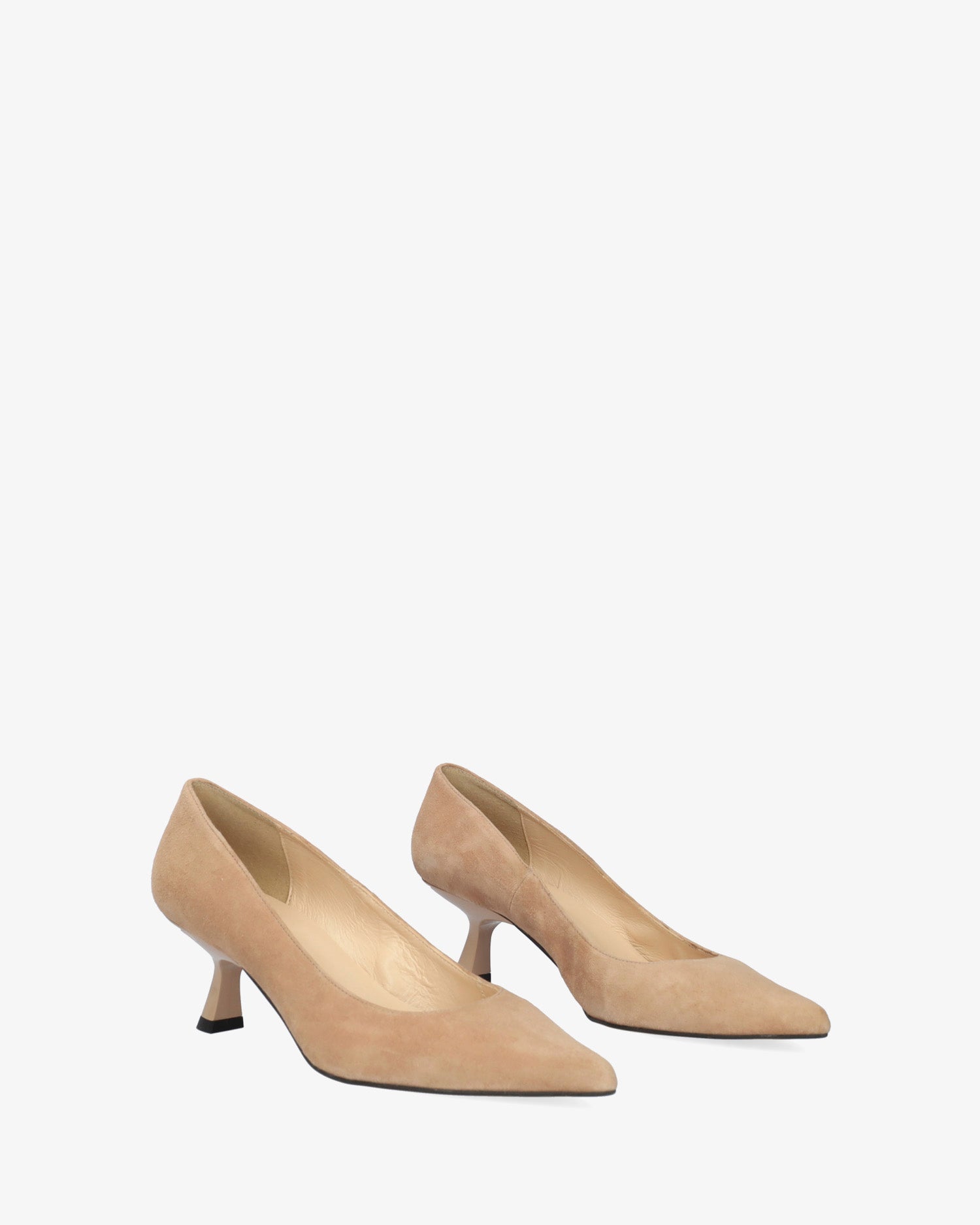 Heeled shoes in taupe suede. Beige leather inner lining. Finished in a pointed toe. The patent lined kitten heel is 5.5 cm / 2.16`` high for small sizes from 32 to 35 EU, 5.5 cm / 2.16`` high for medium sizes from 36 to 41 EU and 6 cm / 2.36`` high for large sizes from 42 to 45 EU. Made in Spain.