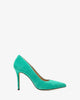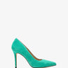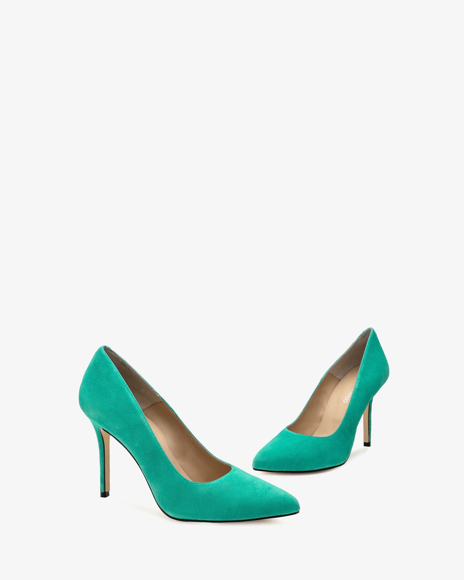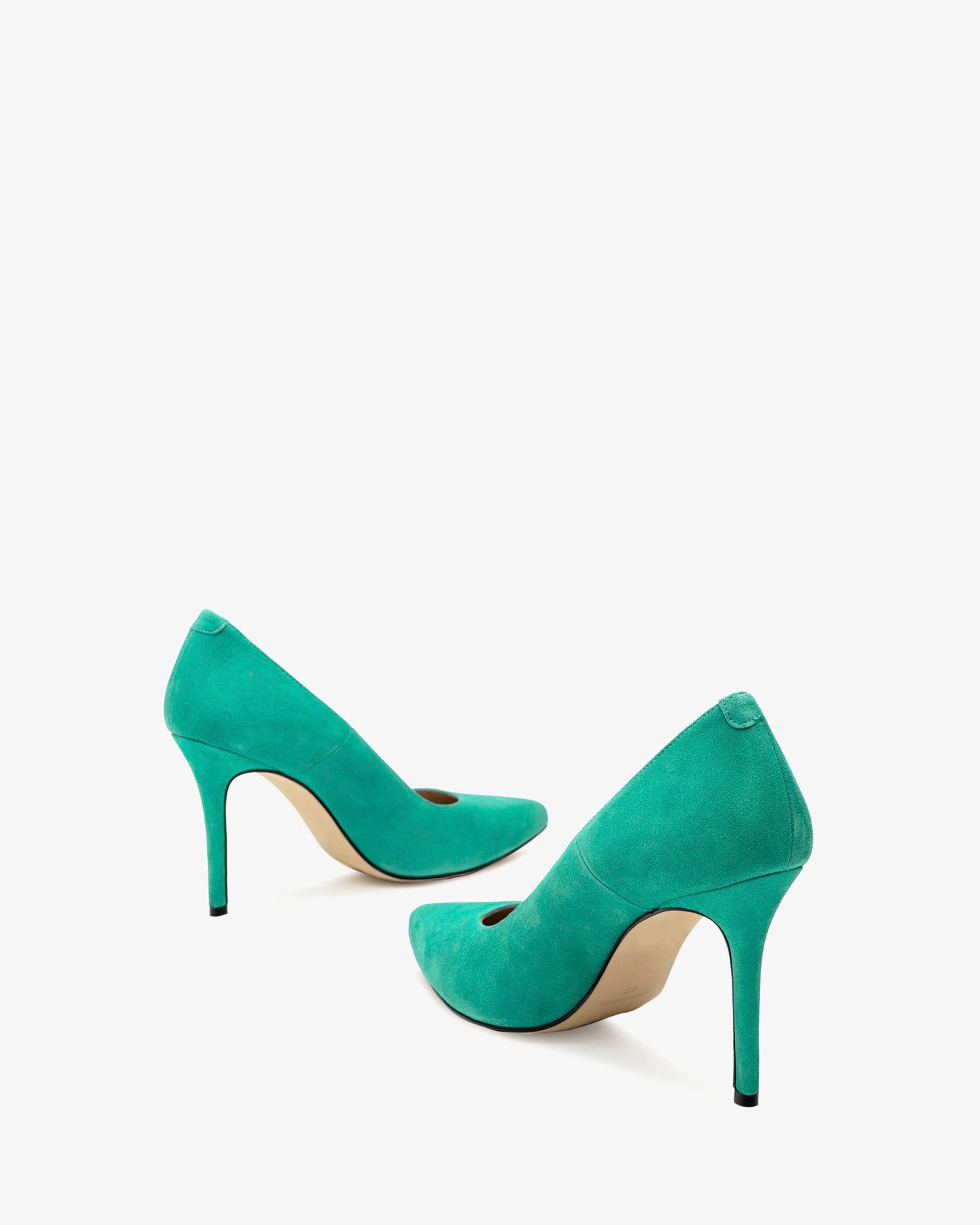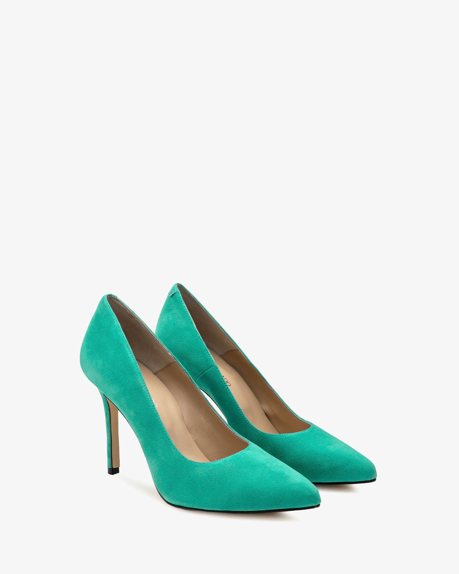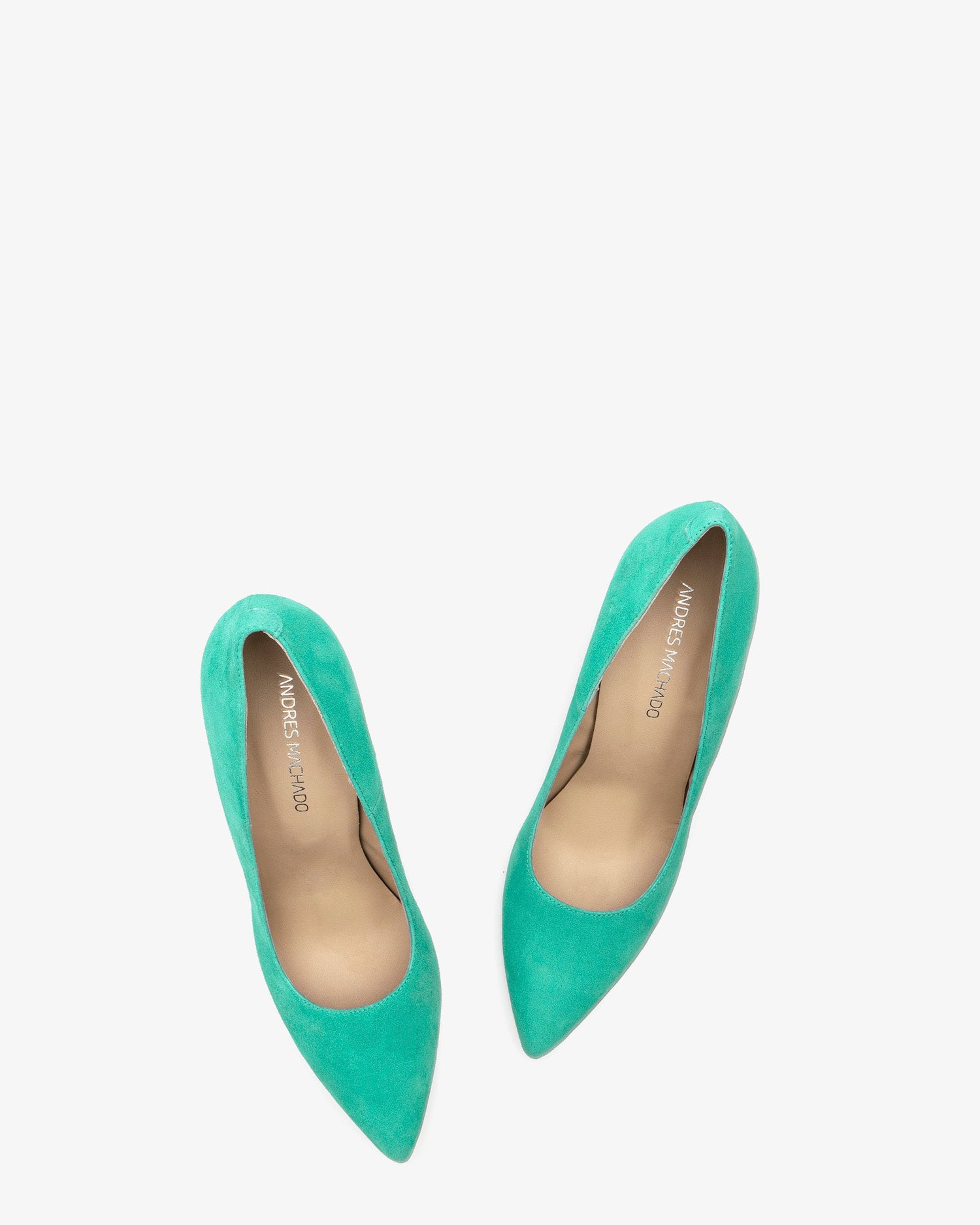 Pointed-toe stilettos with, both the upper and the heel, in Turquoise suede leather. Lining and insole in natural leather. Stiletto heel of 3.74 inches / 9.5 cm for Petite sizes from UK 0.5 to 2.5 / EU 32 to 35. Stiletto heel of 4.53 inches / 11.5 cm for Big sizes from UK 8 to 10.5 / EU 42 to 45. Authentic Spanish craftmanship.