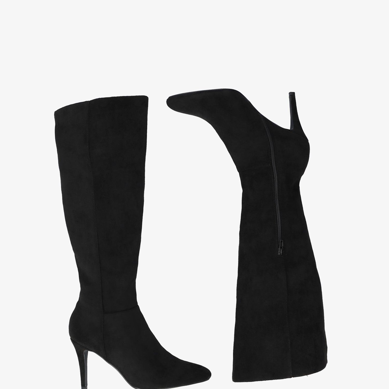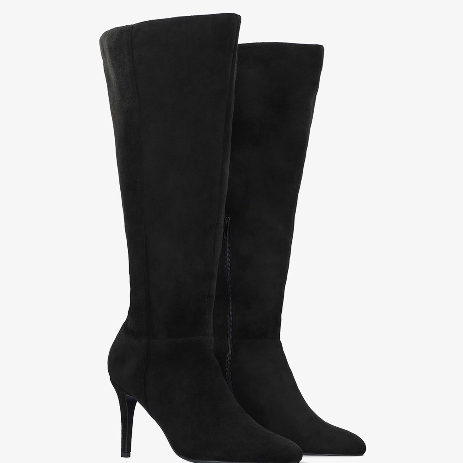 High-calf boots in black faux suede
