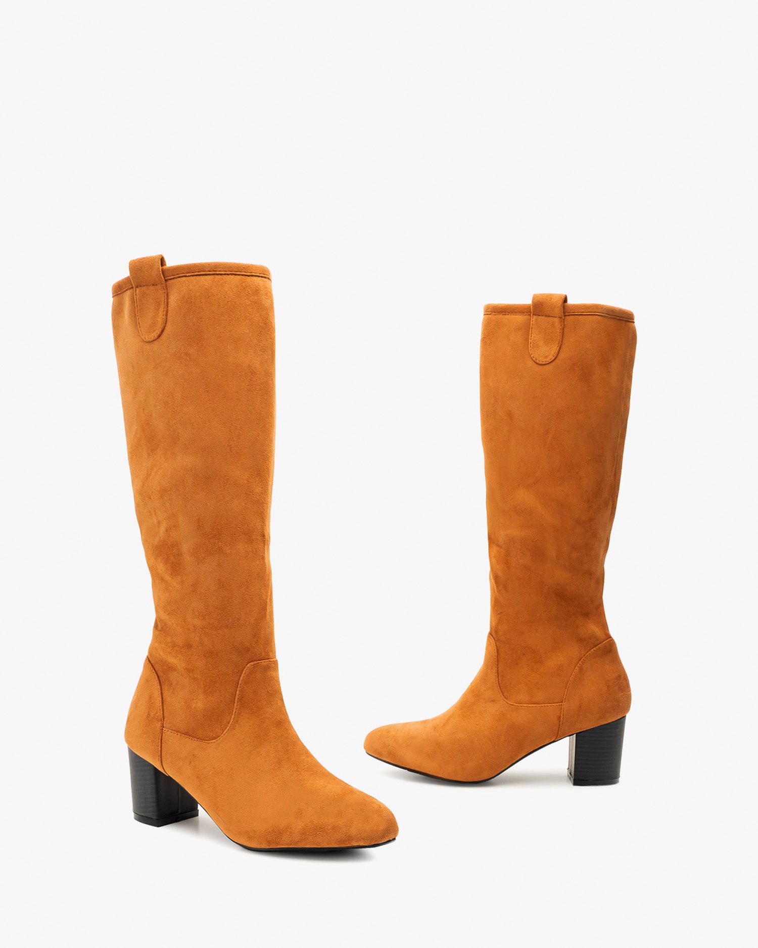 High calf boots in camel suedette