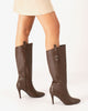High heeled boots in brown soft faux leather