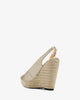 Wedges made of Gold faux leather. Slingback buckle closure with mini-charm rounded detail, both the buckle and the charm in Gold colour. Braided jute wedge of 4.33" / 11 cm with front platform of 0.79" / 2 cm for Small sizes from UK 0.5 to 2.5 / EU 32 to 35. Braided jute wedge of 5.51" / 14 cm with front platform of 1.18" / 3 cm for Big sizes from UK 8 to 10.5 / EU 42 to 45.
