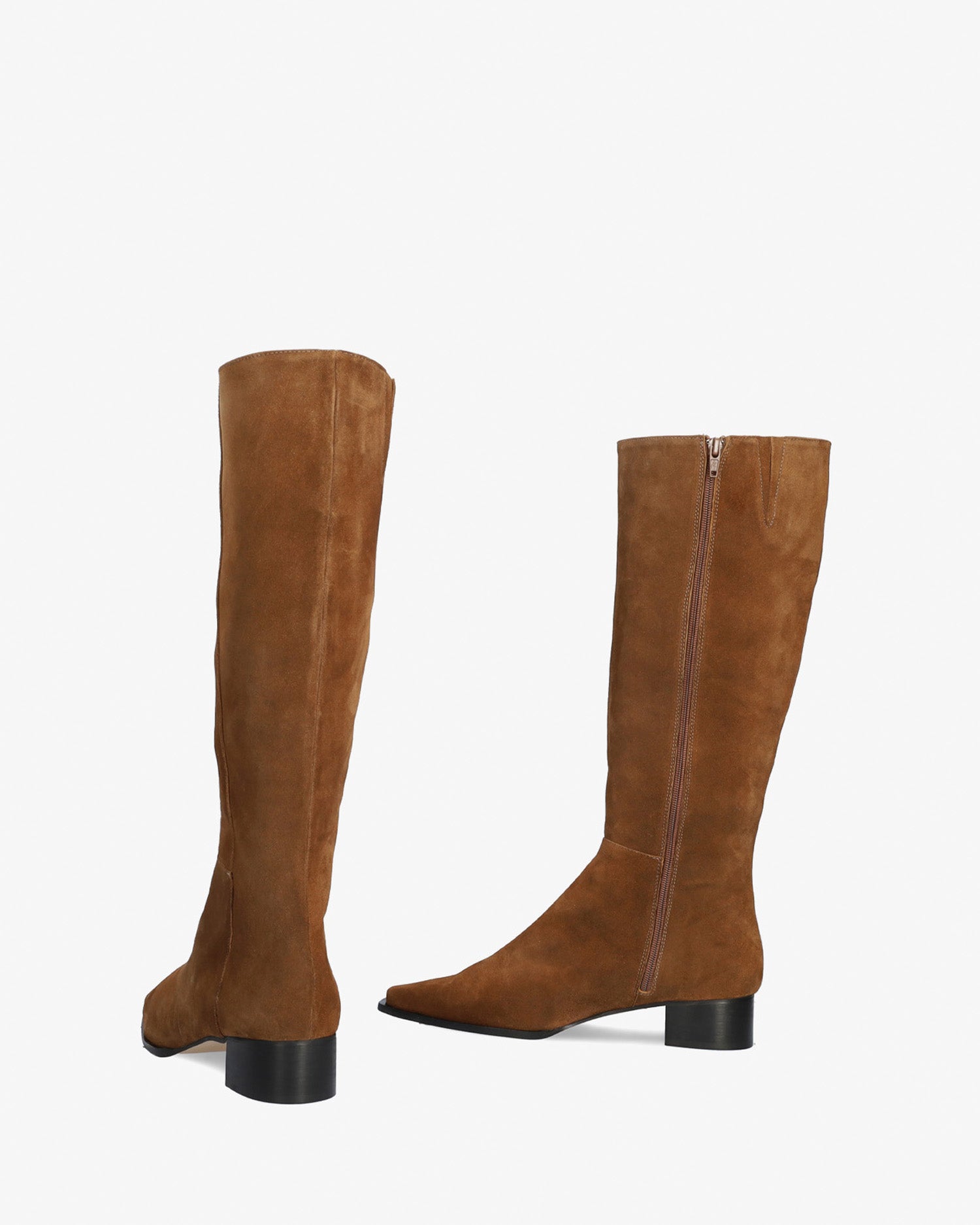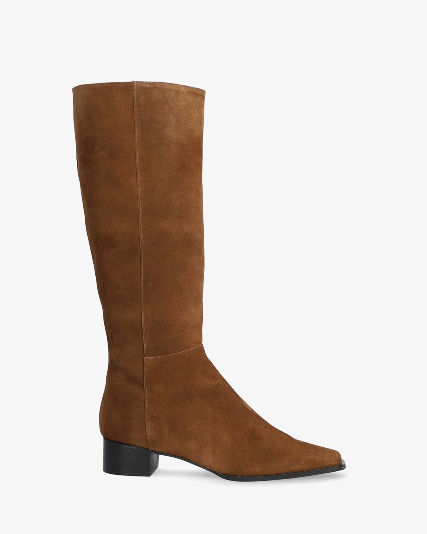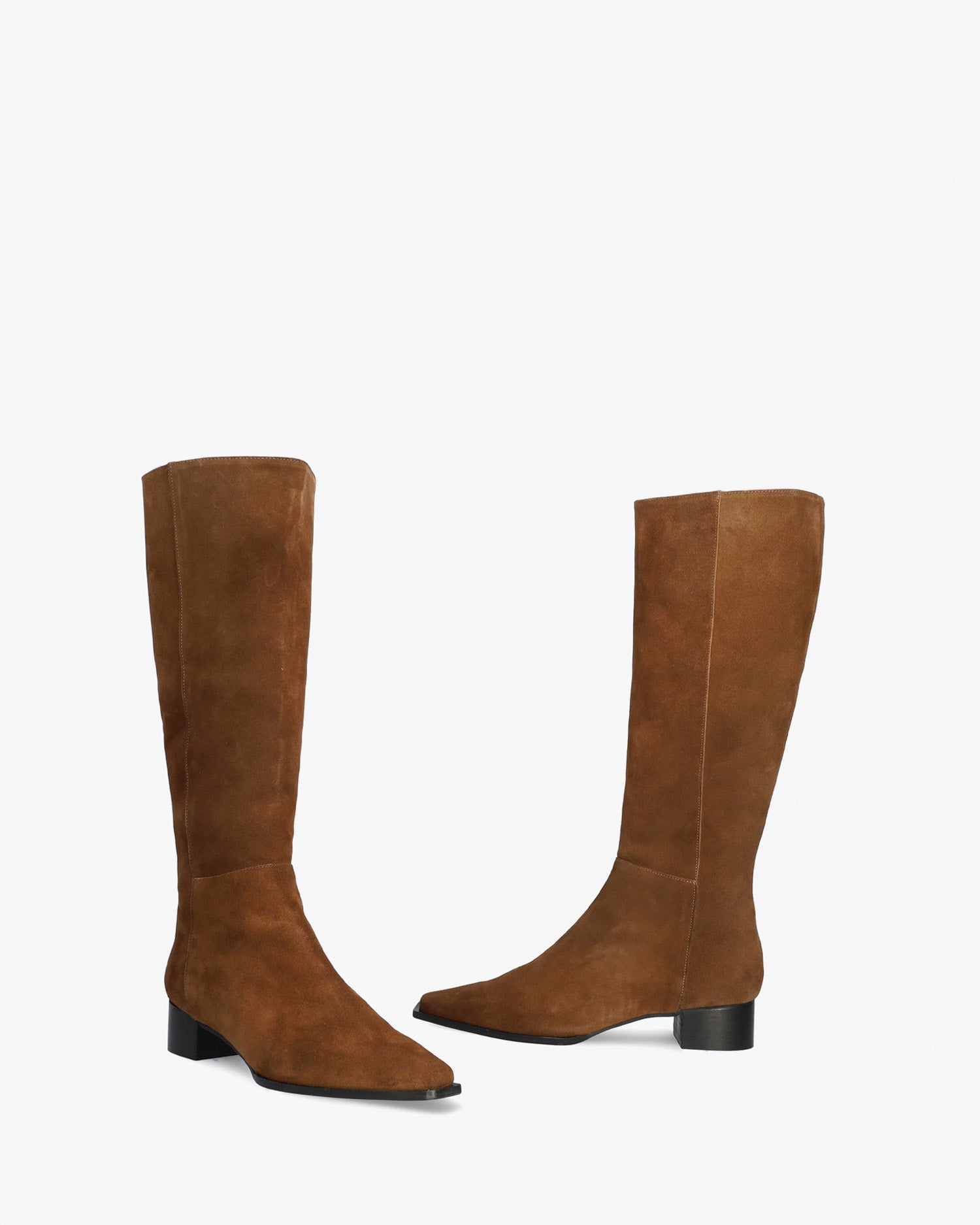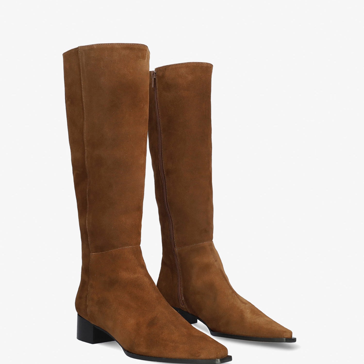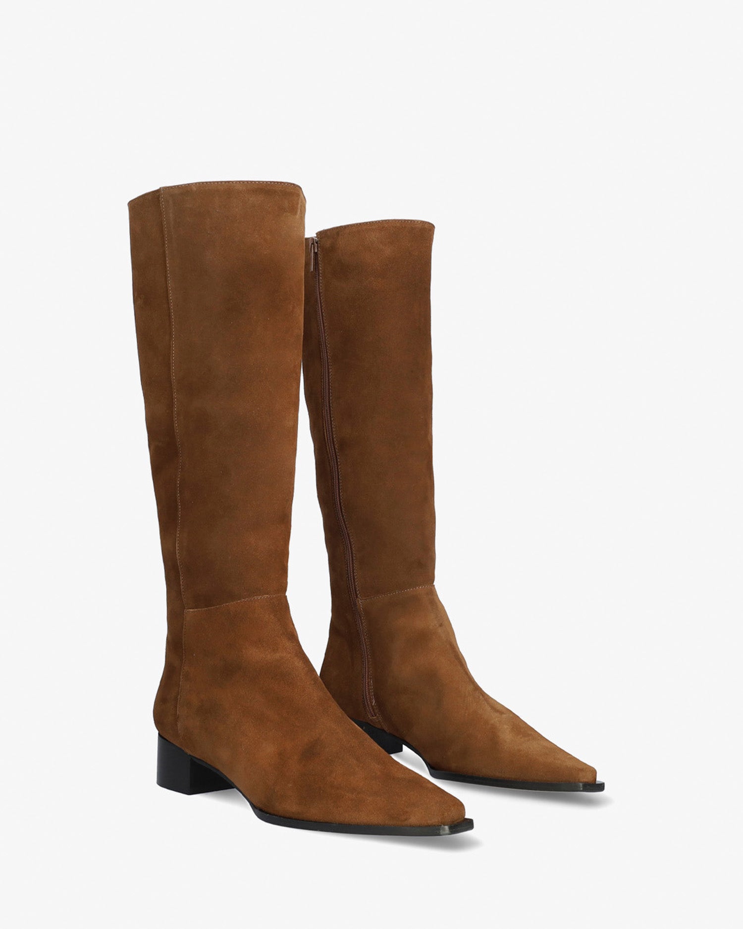 Knee-high boots in cognac leather. Matching stitching on the upper. Matching zipper closure on the internal face of the shaft. Finished in a square toe. The wide heel is 3.5 cm / 1.37`` high for small sizes from 32 to 35 EU, 4 cm / 1.57`` high for medium sizes from 36 to 41 EU and 4 cm / 1.57`` high for large sizes from 42 to 45 EU. Made in Spain.