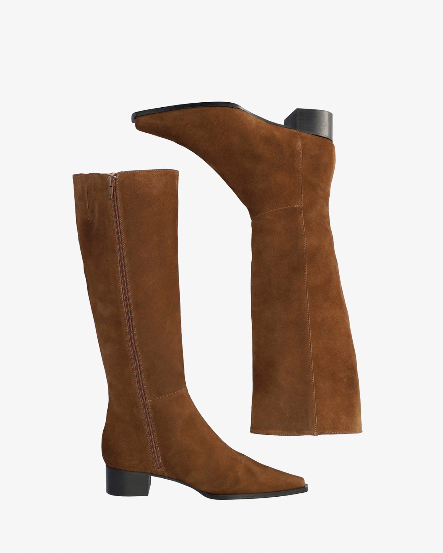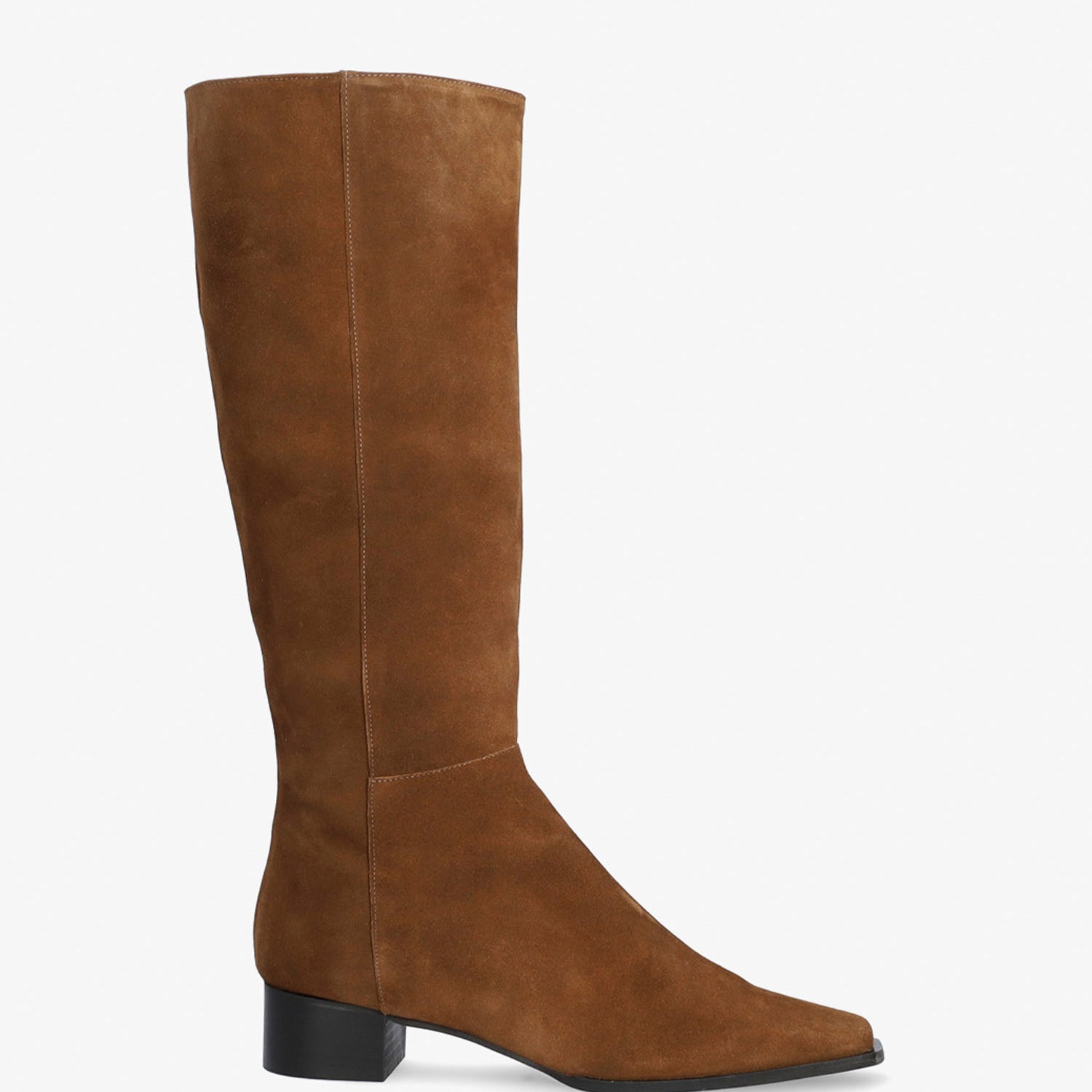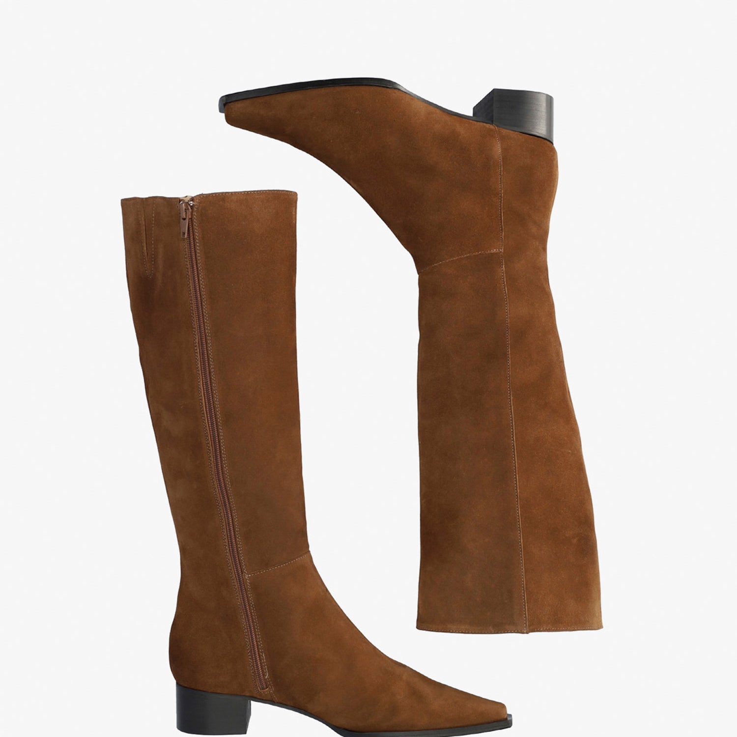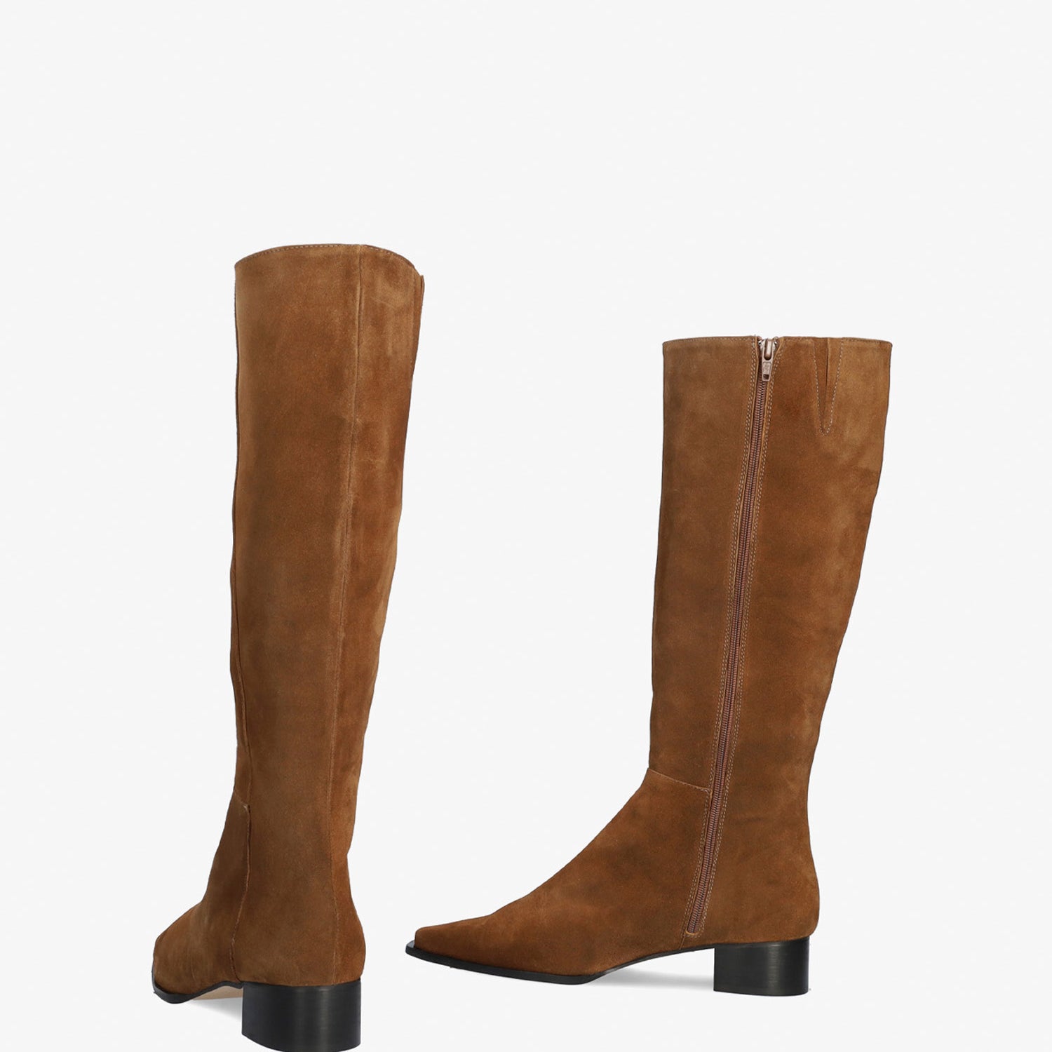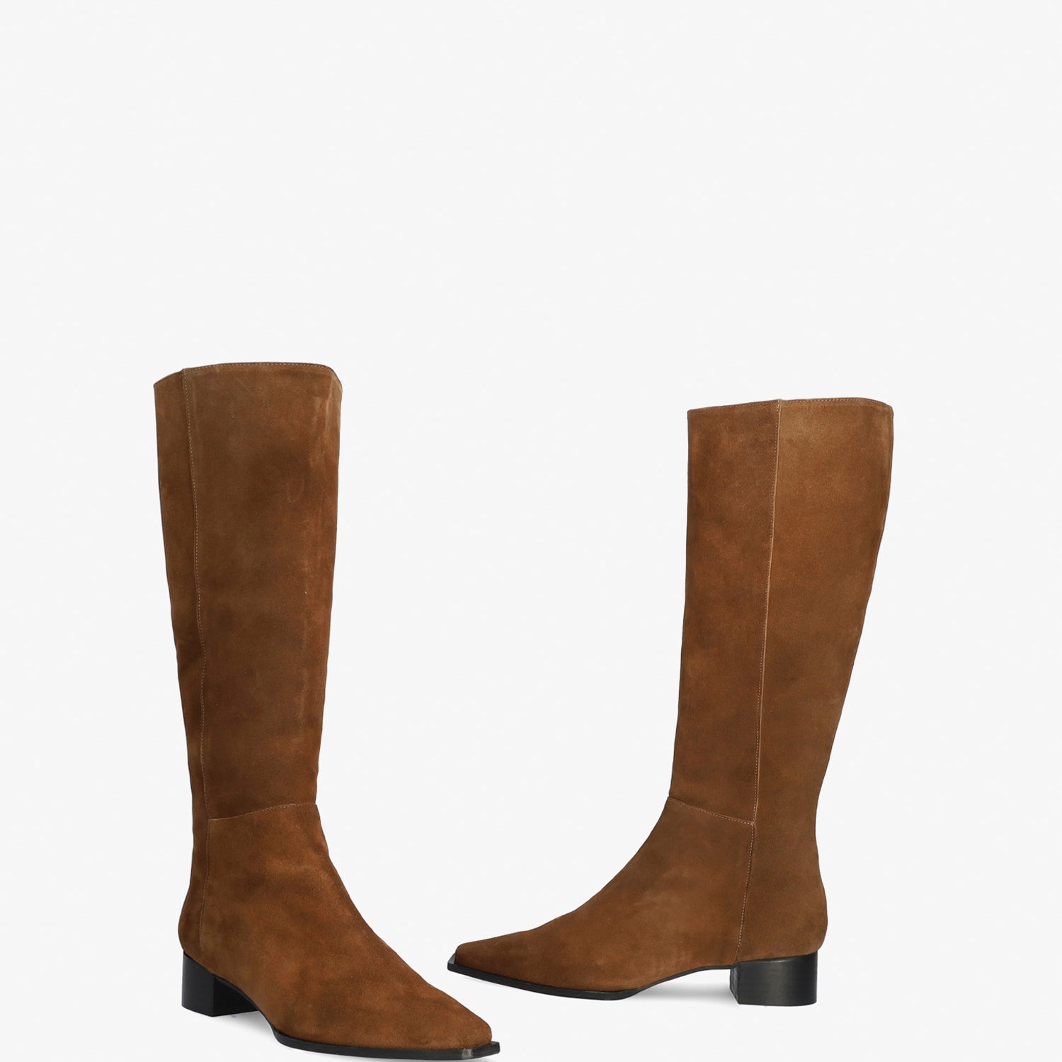 Knee-high boots in cognac leather. Matching stitching on the upper. Matching zipper closure on the internal face of the shaft. Finished in a square toe. The wide heel is 3.5 cm / 1.37`` high for small sizes from 32 to 35 EU, 4 cm / 1.57`` high for medium sizes from 36 to 41 EU and 4 cm / 1.57`` high for large sizes from 42 to 45 EU. Made in Spain.