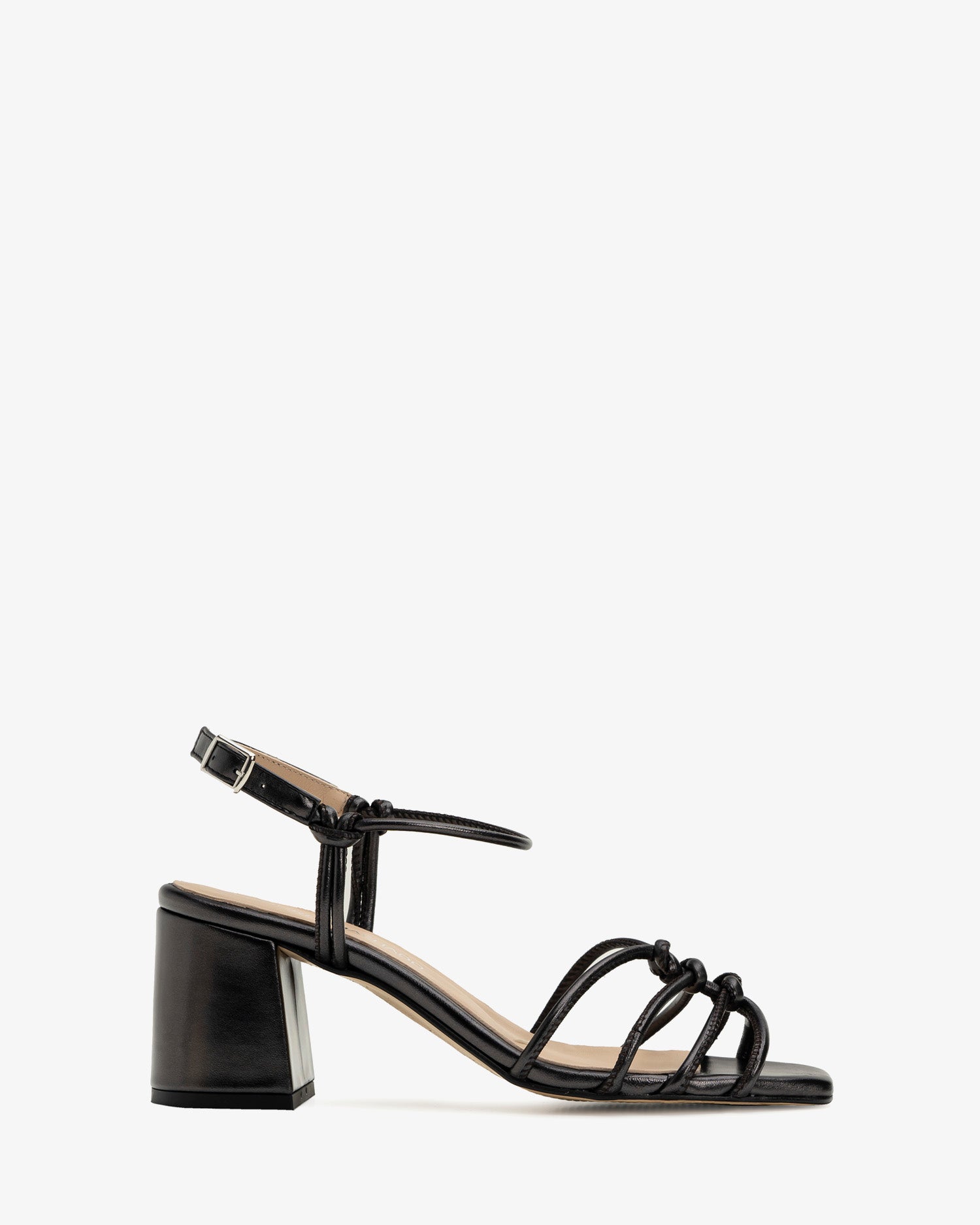 Knotted sandals in metallic black leather