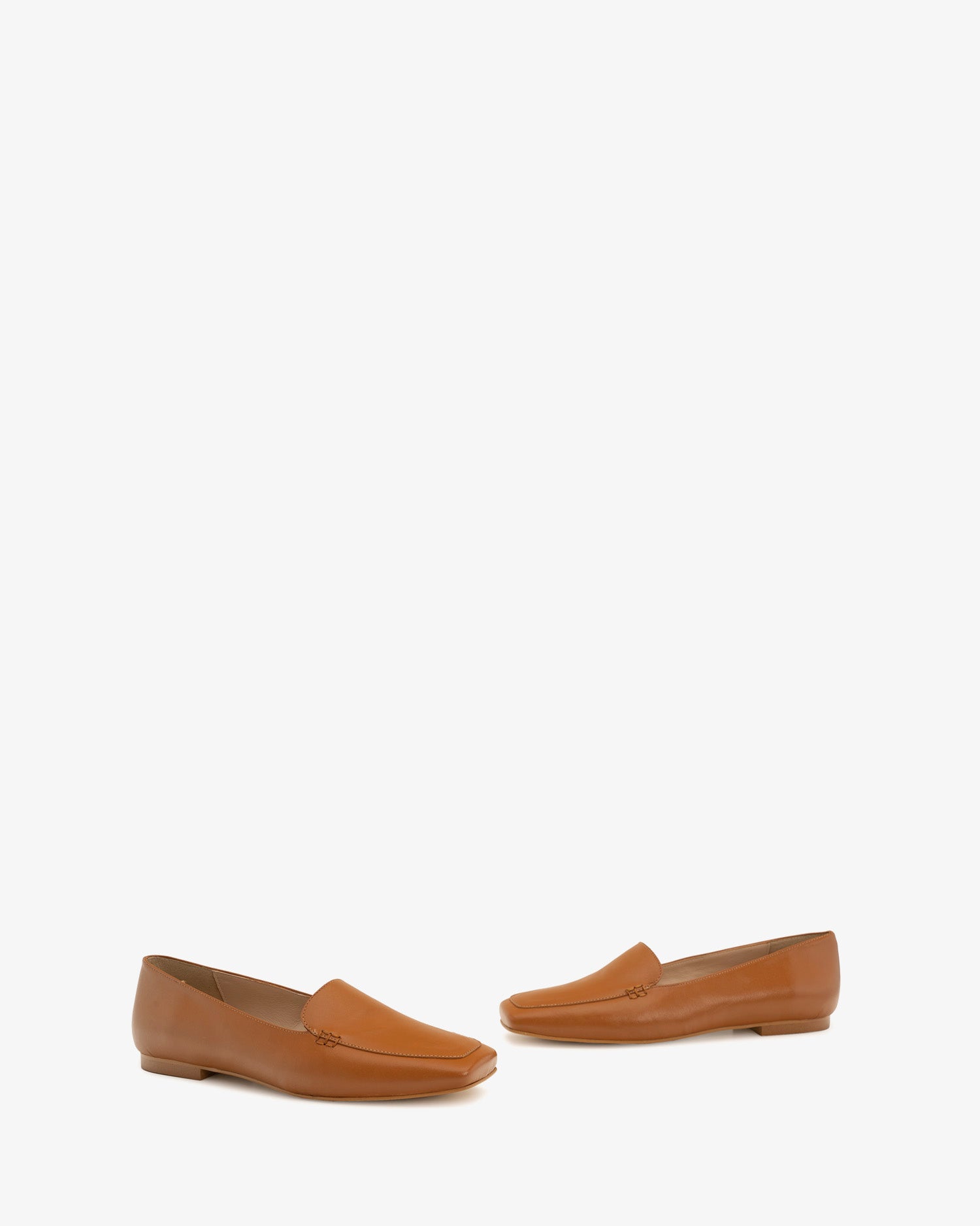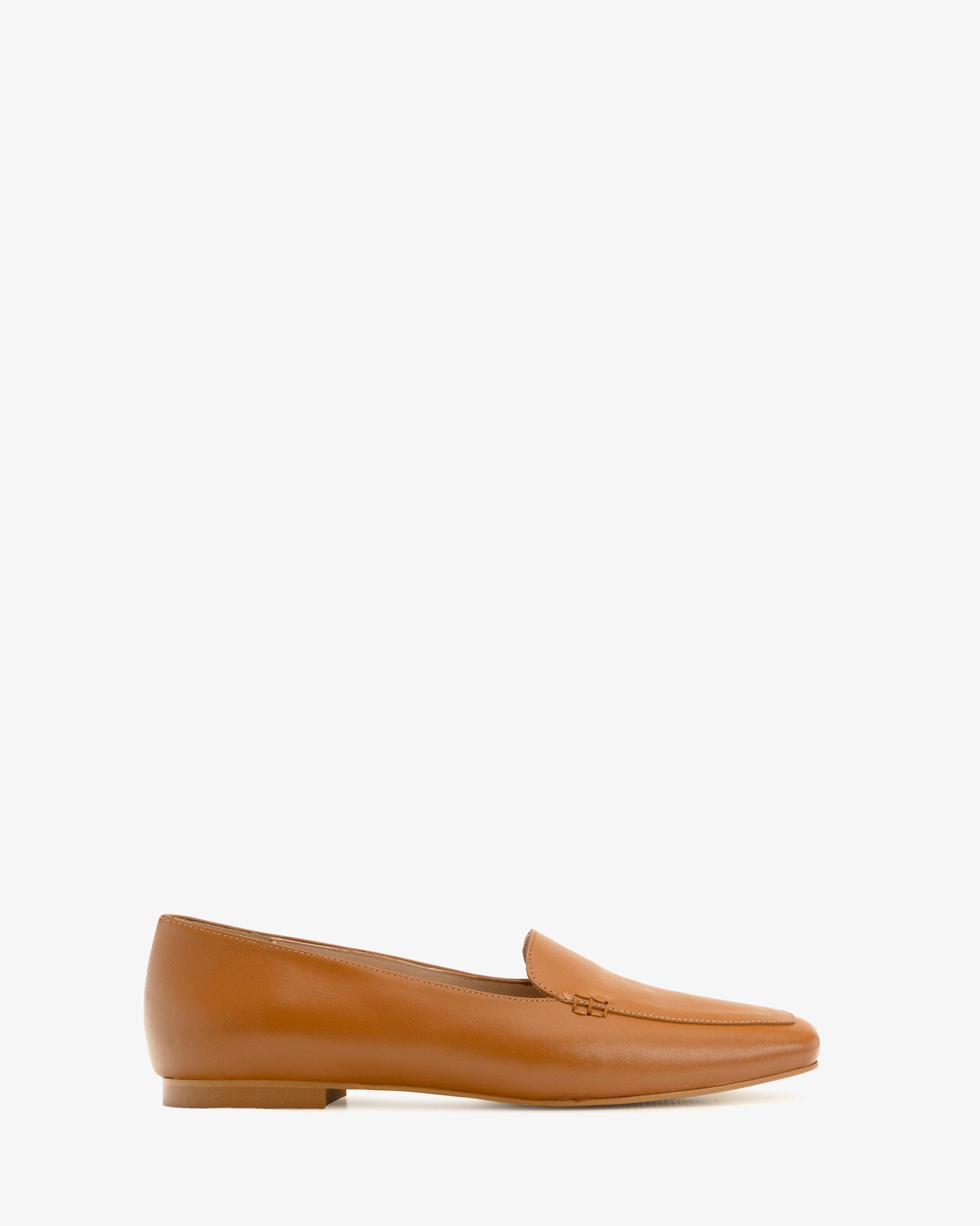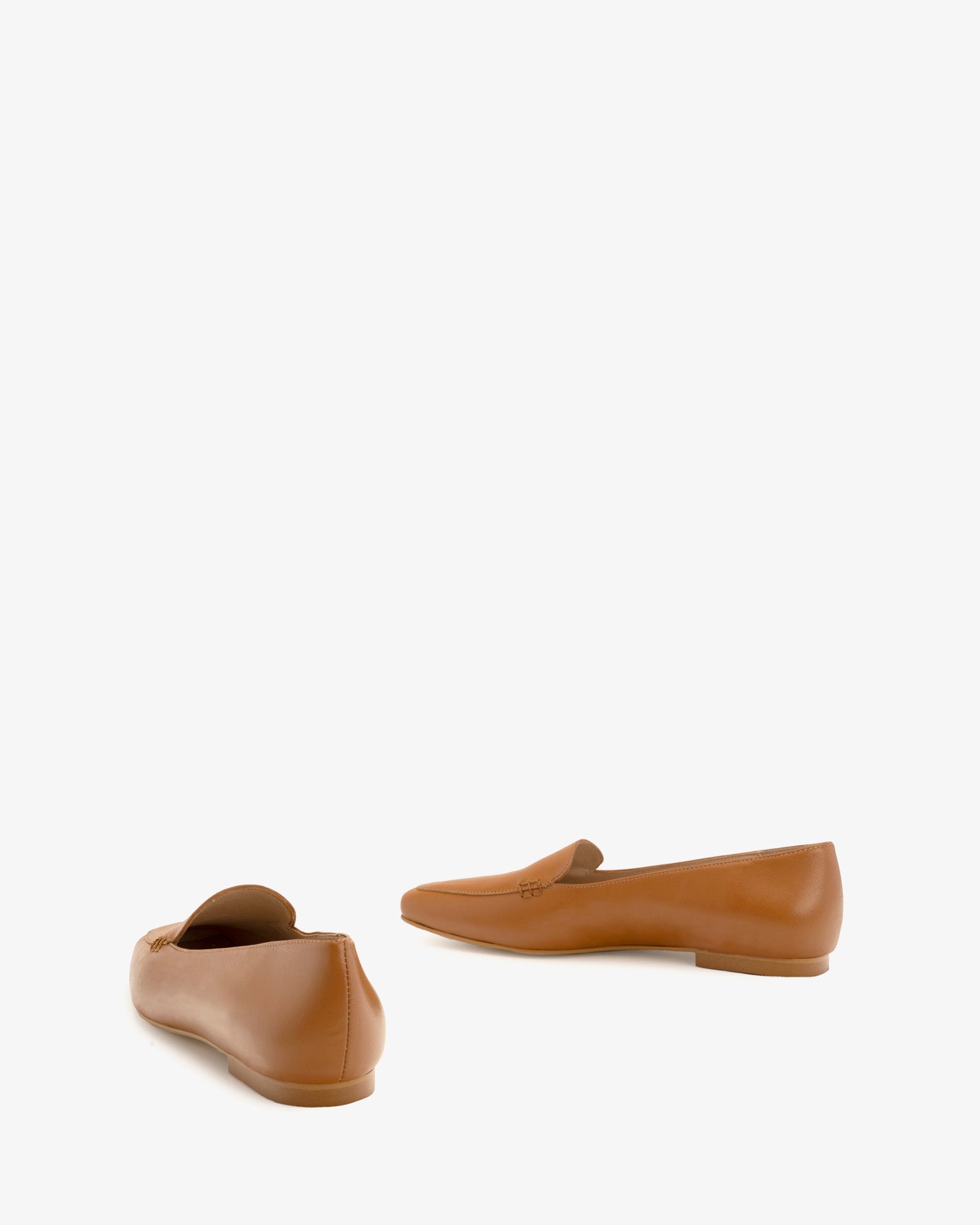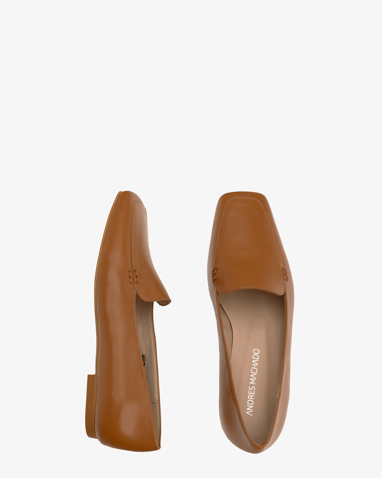 Loafer style shoes in brown smooth leather. Simple design finished in a square toe. Beige leather inner lining. Available in sizes 32 to 45 EU. Made in Spain.