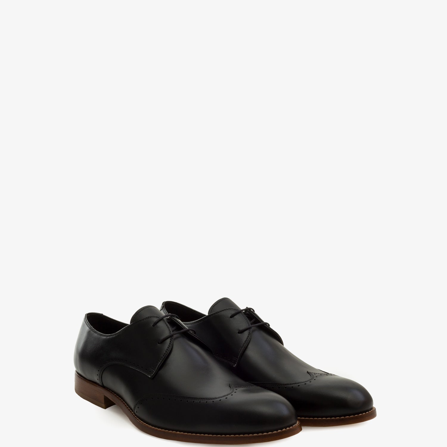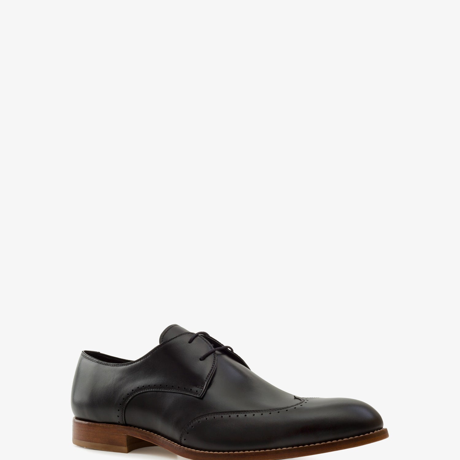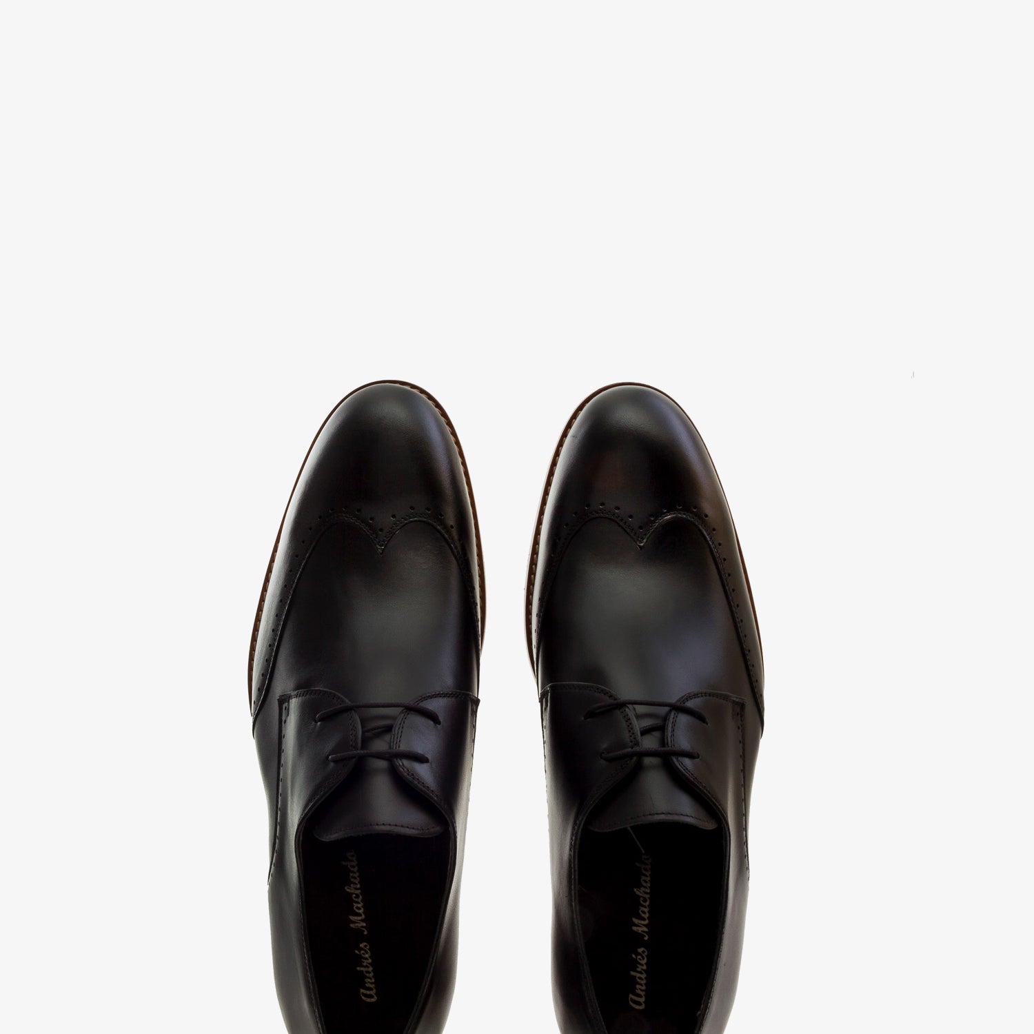 Men`s Oxford style shoes in Black Leather with broguing on the tip. Last shape finished in fine tip. Toned lace-up closure. Leather outsole. Small sizes UK 4 to 6.5 / EU 37 to 40. Men`s large sizes from UK 11.5 to 14 / EU 46 to 50. MADE IN SPAIN.