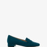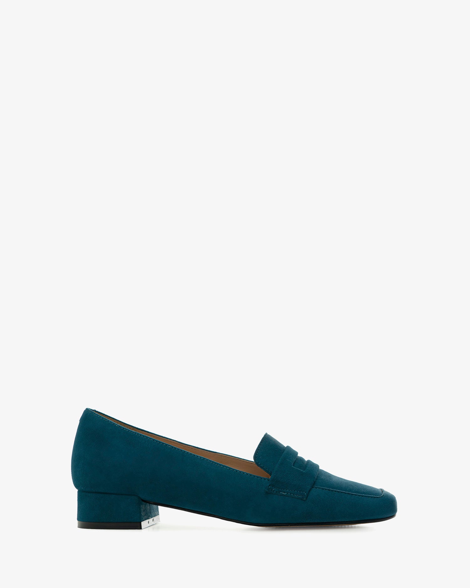 Moccasin style shoes made of fine Blue suede leather. Mask detail to the tone placed on the vamp. Leather interior lining and square toe. Toned-covered block heel of 0.98" / 2.5 cm of height for small sizes from UK 0.5 to 2.5 / EU 32 to 35. Heel of 1.18" / 3 cm of height for large sizes from UK 8 to 10.5 / EU 42 to 45. Made in Spain.
