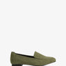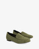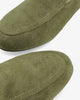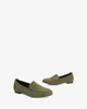 Moccasins in kaki faux suede with matching decorative stitching around the vamp. Almond shaped toe box. Available in large sizes from 42 to 45 EU.