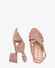 Nude embossed faux leather sandals designed with matching, wide straps crossed over the vamp with an embossed leaf detail. Matching buckled strap closure around the ankle. Round and elongated toe box. The wide heel is 4,5 cm / 1.77`` high for small sizes from 32 to 35 EU. The wide heel is 5 cm / 1.96`` high for large sizes from 42 to 45 EU.