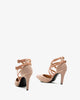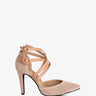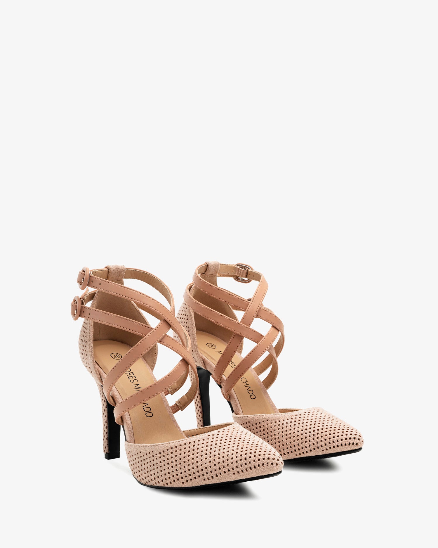 Nude faux suede court shoe. Die-cut faux suede leather on the vamp. Multiple nude, thin straps crossed over the instep. Double buckled strap closure on the side. Closed, pointed toe. Counter lined in matching embossed nude faux suede leather. The thin, lined heel is 10 cm / 3.93`` high for small sizes from 32 to 35 EU. The heel is 11 cm / 4.33`` high for large sizes from 42 to 45 EU.